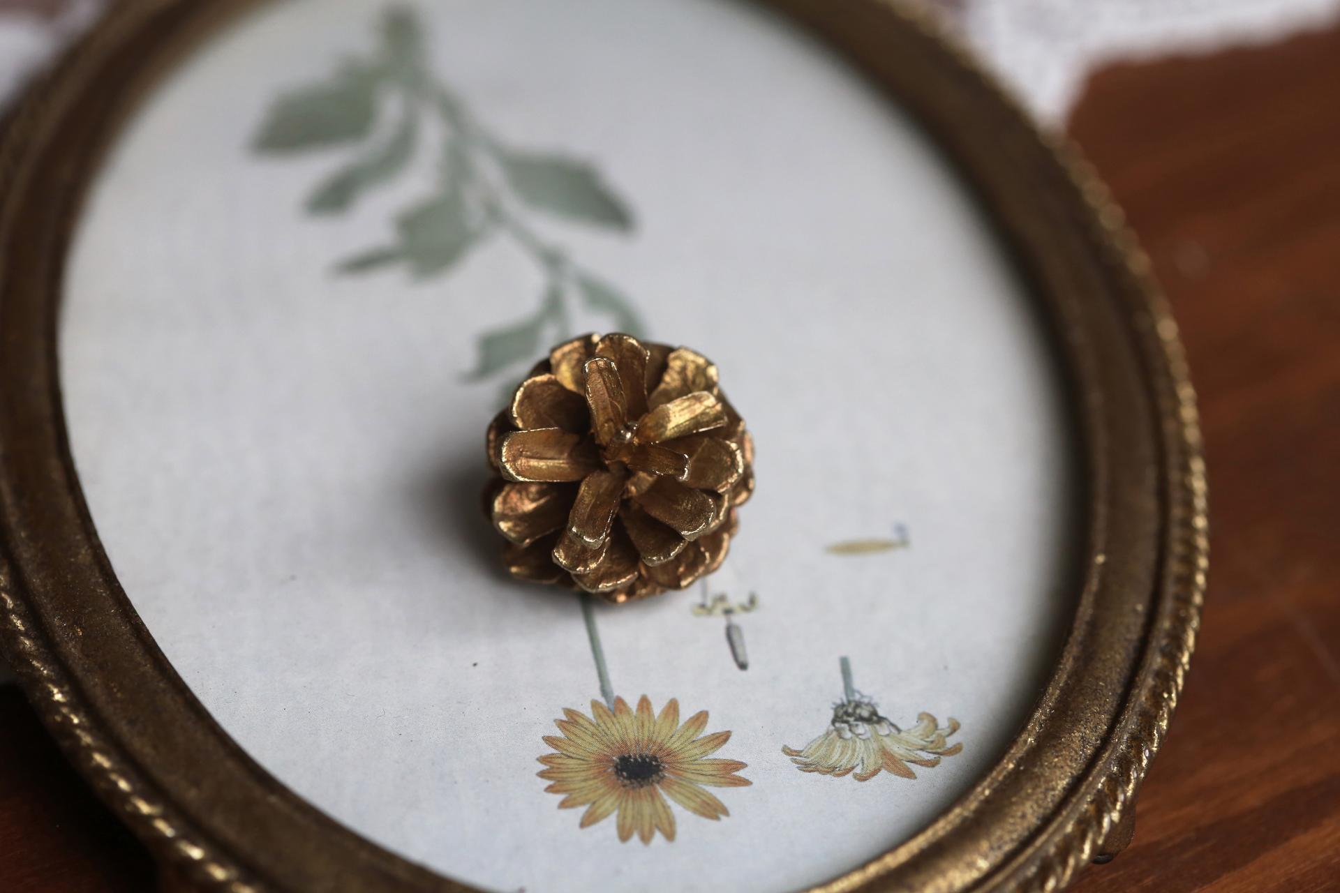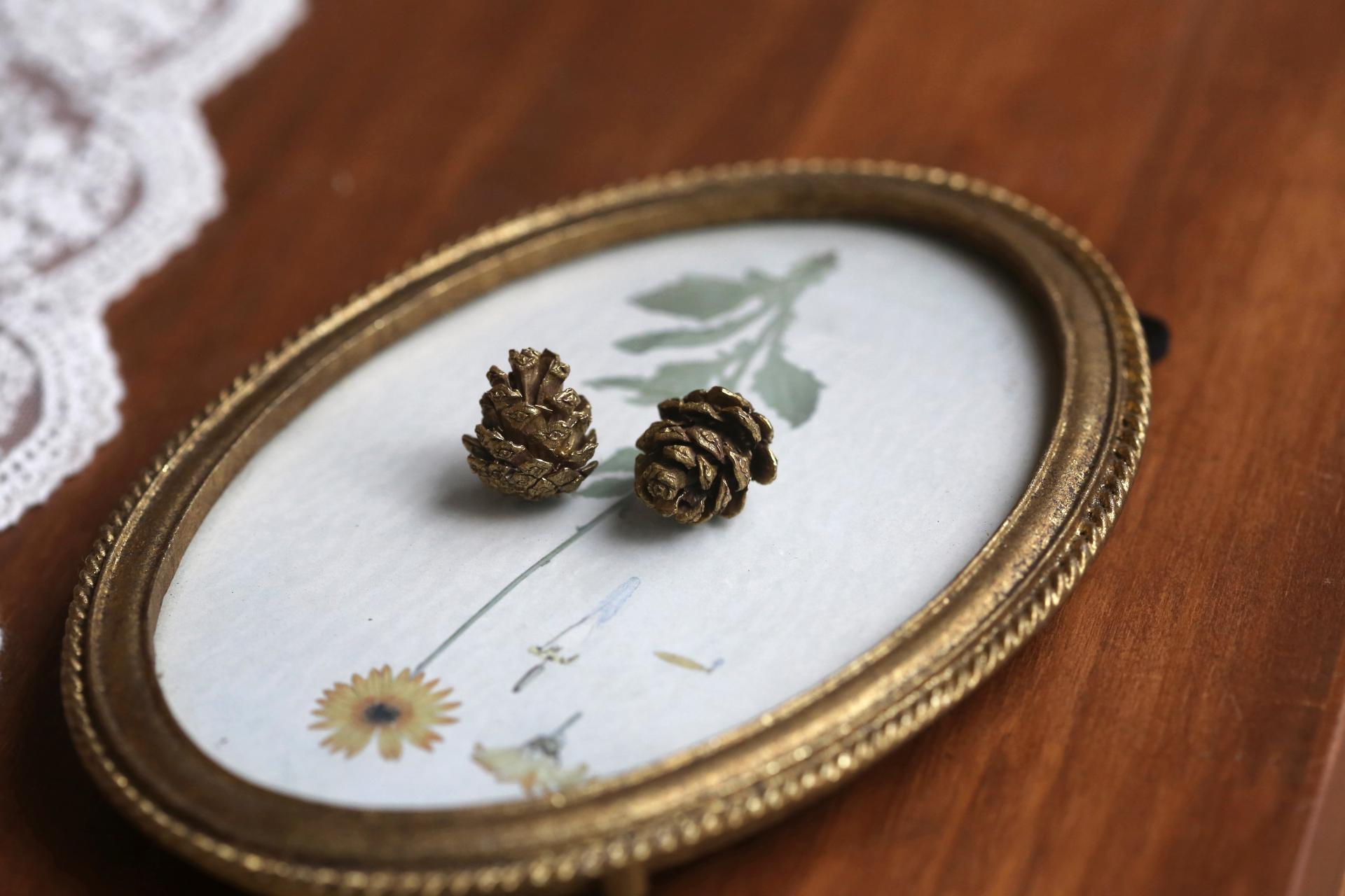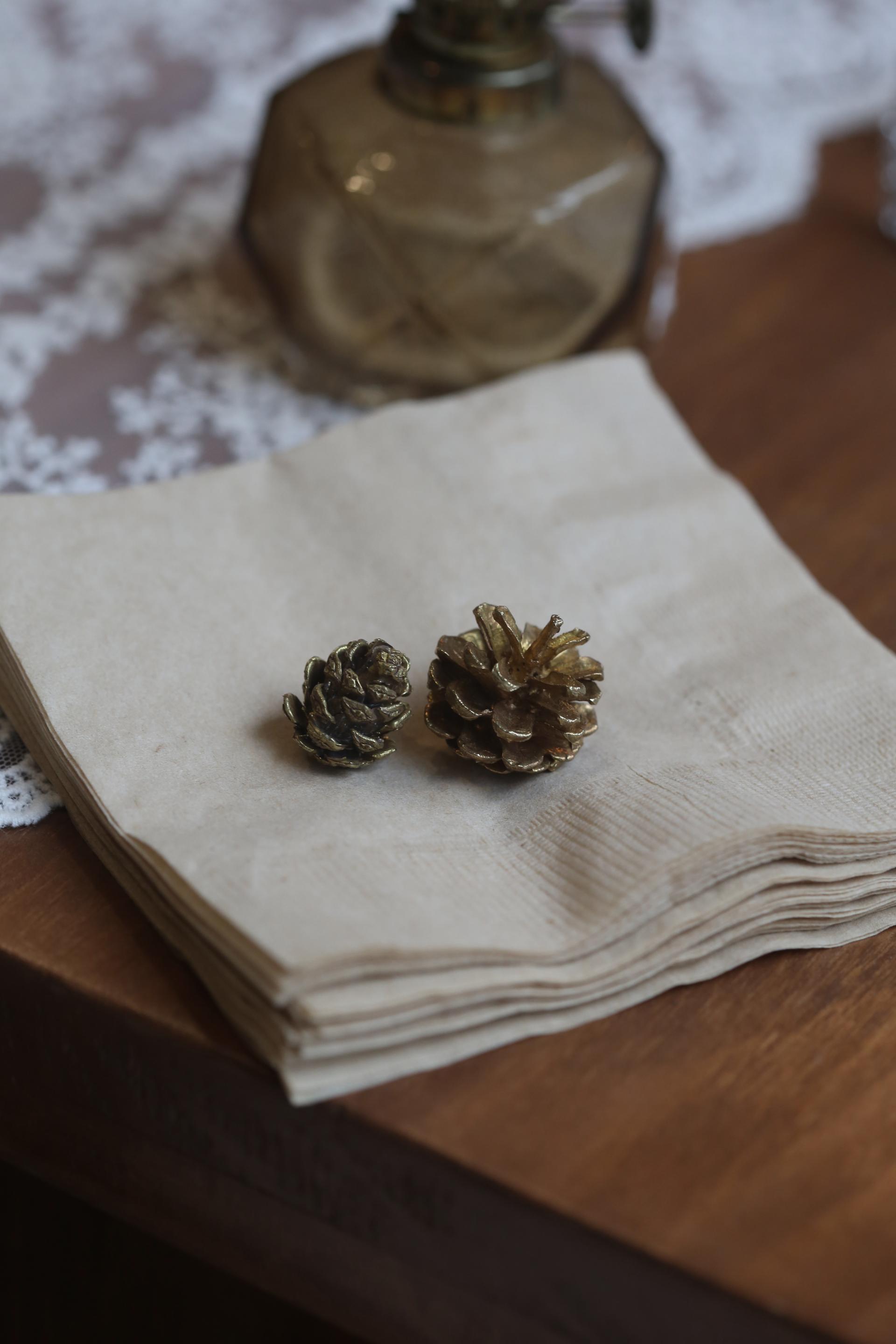 자연 속에서 마주한 크고 작은 두 개의 솔방울.