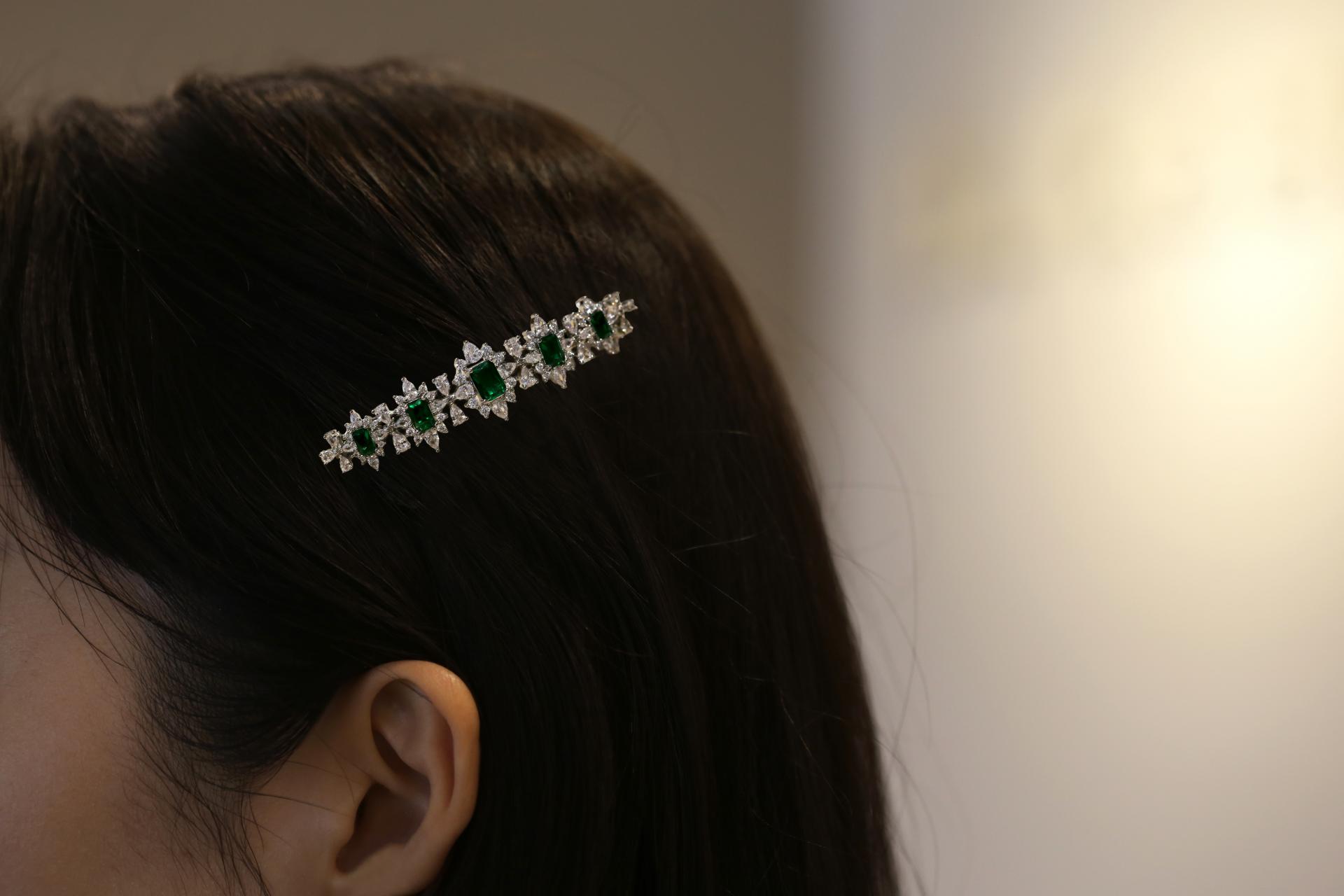 에메랄드와 화이트 다이아몬드가 세팅되어진 것 처럼 보이는