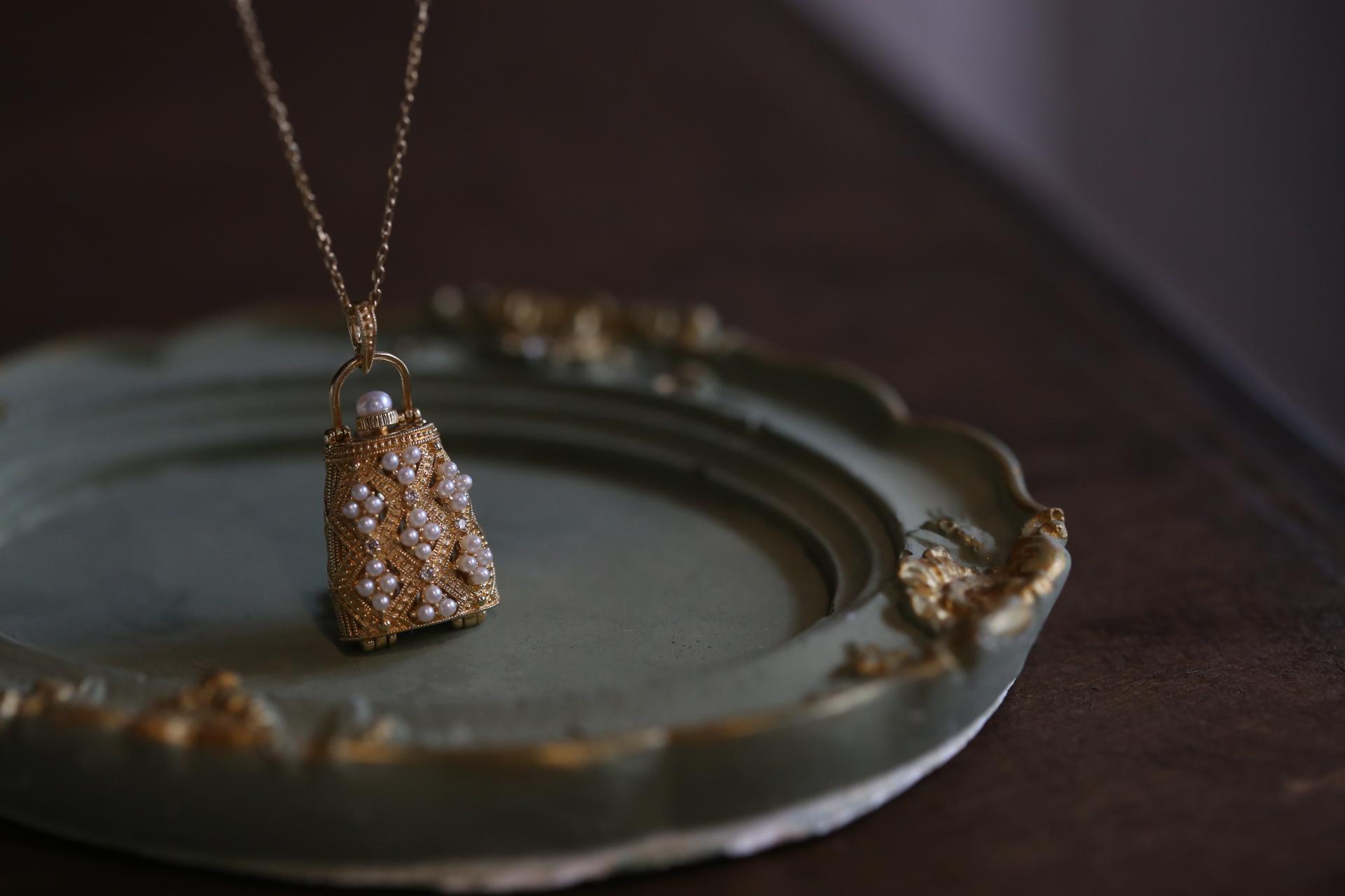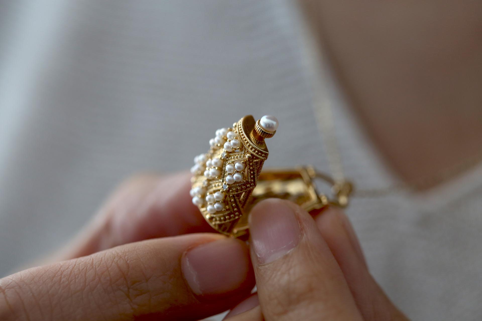 위쪽의 진주 장식을 기준으로 열고 닫히는 구조로 되어 있어요.