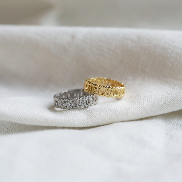 보석 없이도 표면의 텍스처에 반사되는 빛으로 자연스러운 반짝임을 느낄 수 있는 디자인입니다.