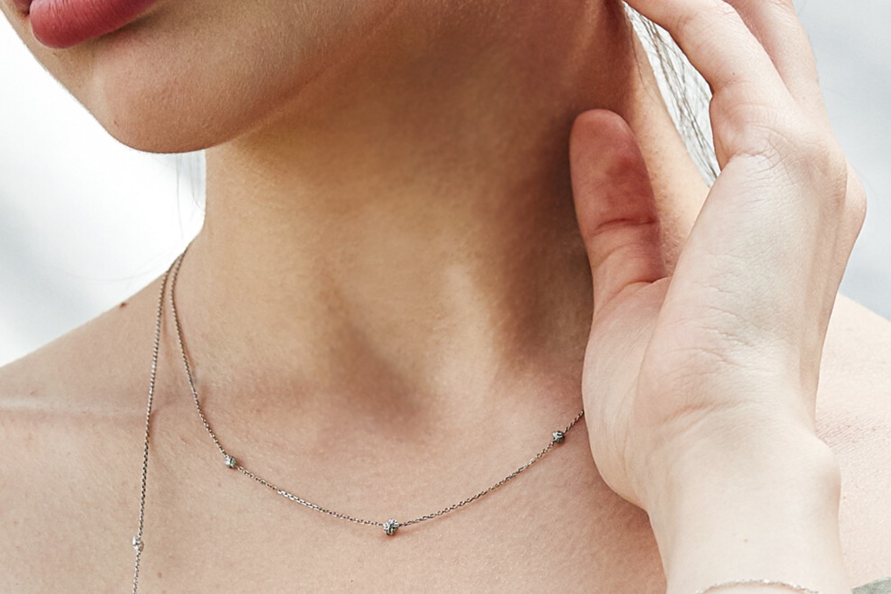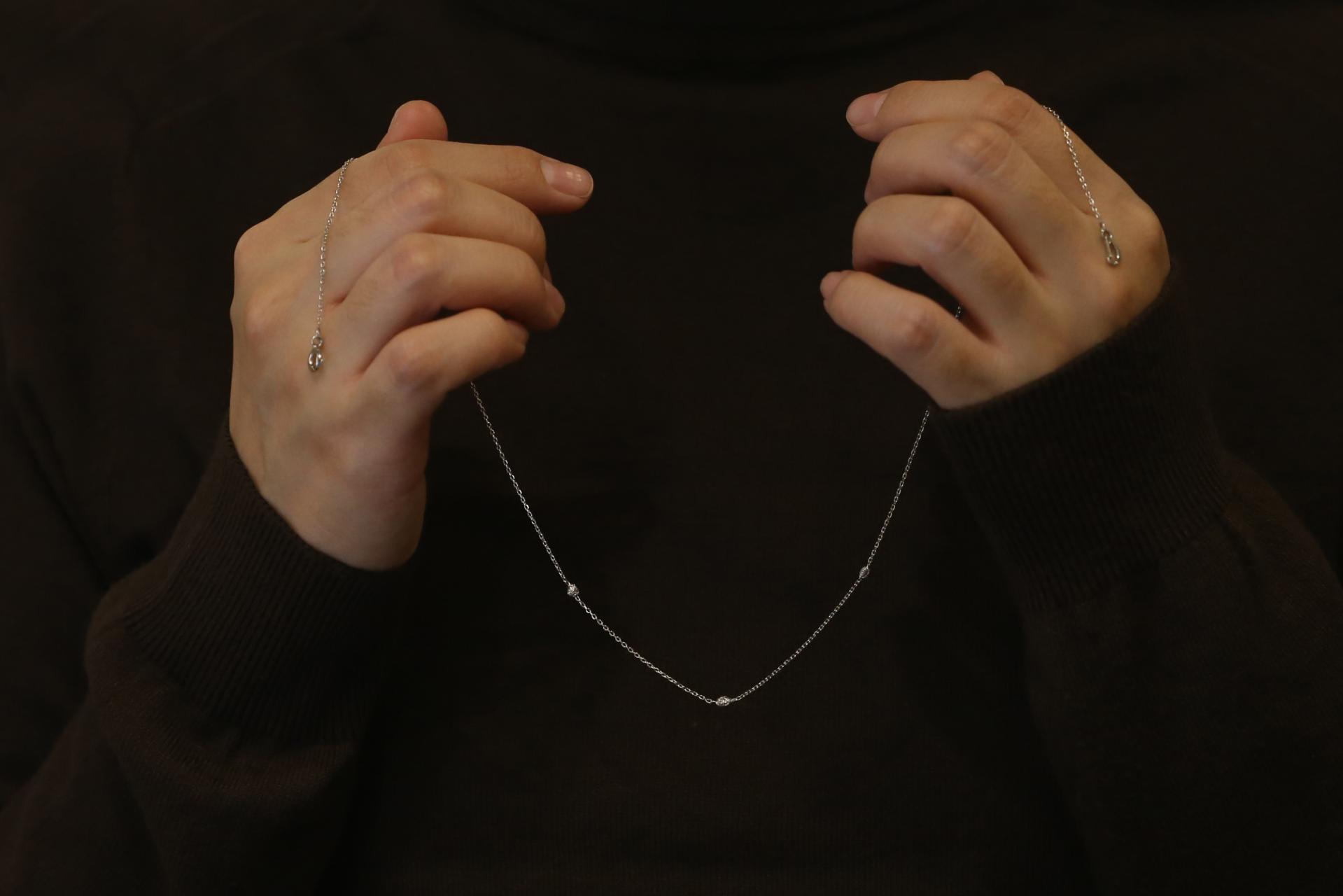 벨테소로의 목걸이와 팔찌 체인 끝에는 브랜드를 상징하는 'B' 형태의 장식으로 연결되어 이야기를 완성합니다.