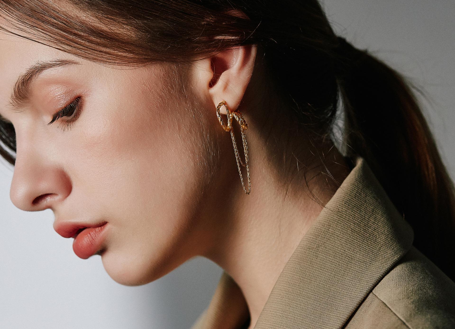 러프한 질감의 로프가 꼬인 입체감있는 디자인의 이어링입니다.