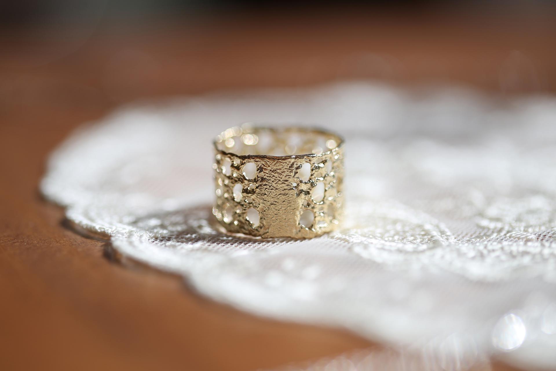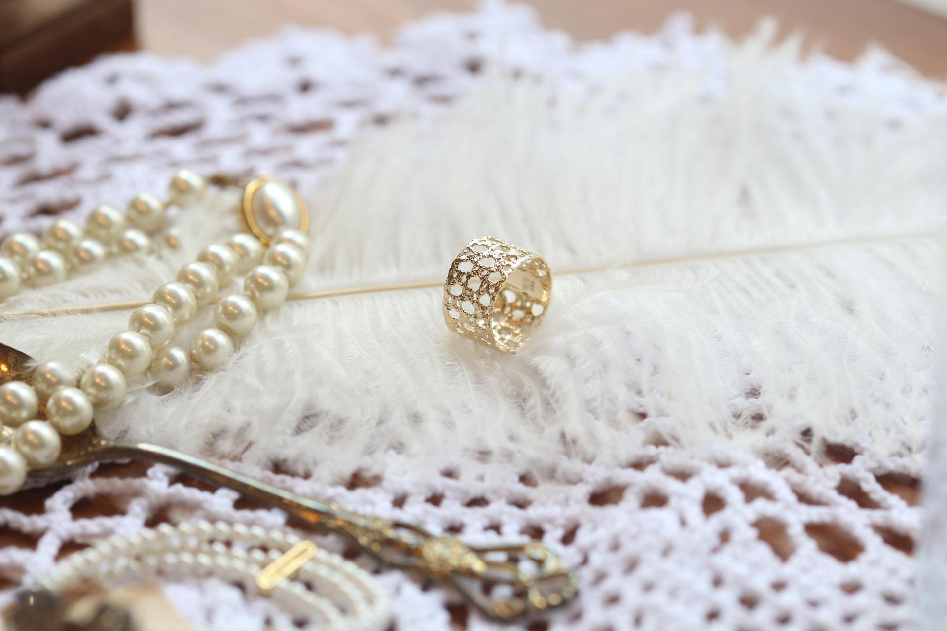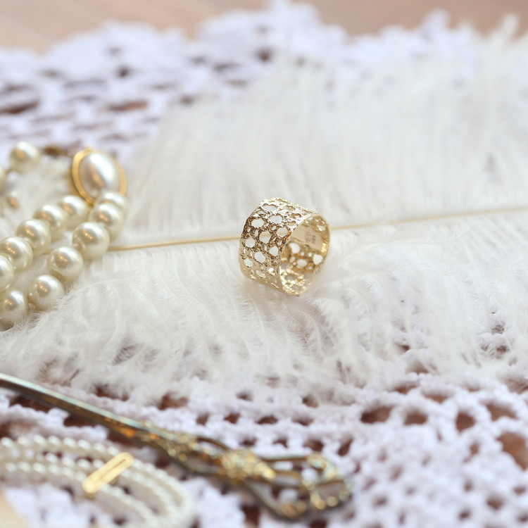 얇고 넓은 레이스를 부드럽게 감싼 듯한 실루엣이 매력적인