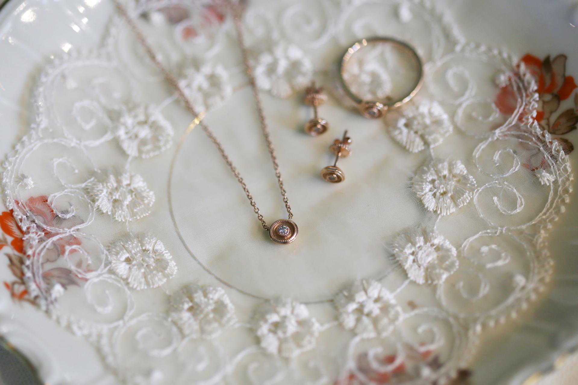 Rose Gold & White Diamond 목걸이 & 이어링