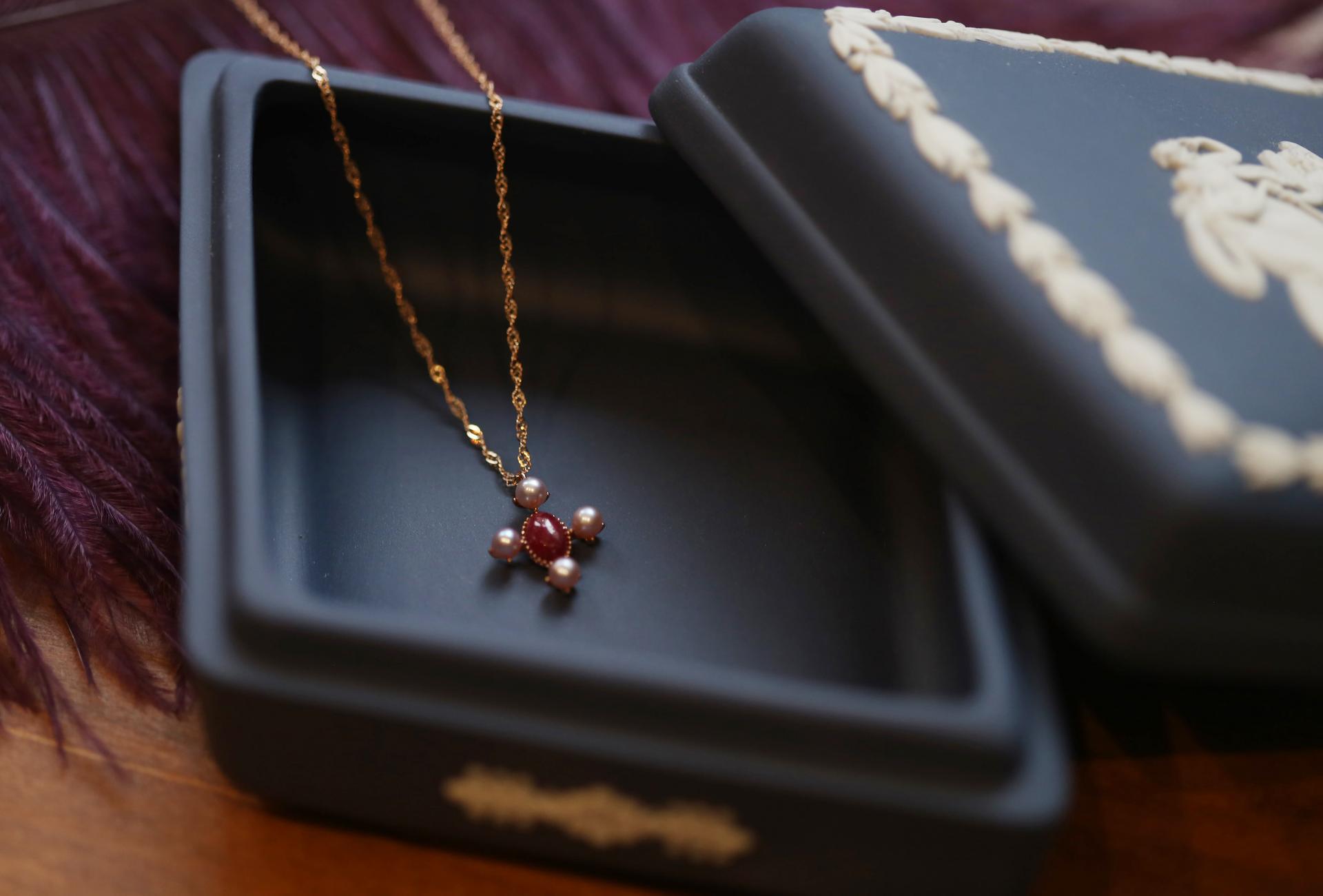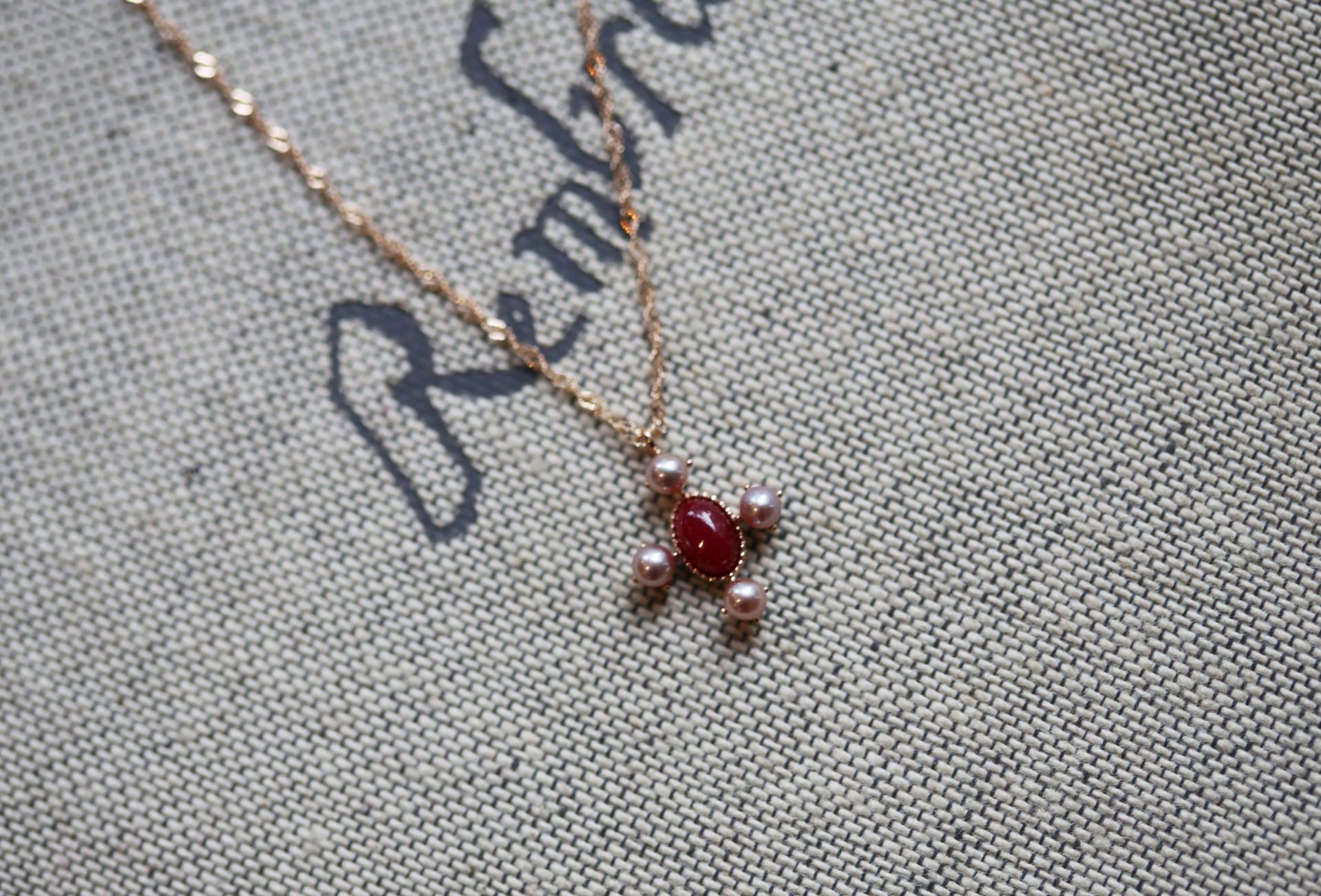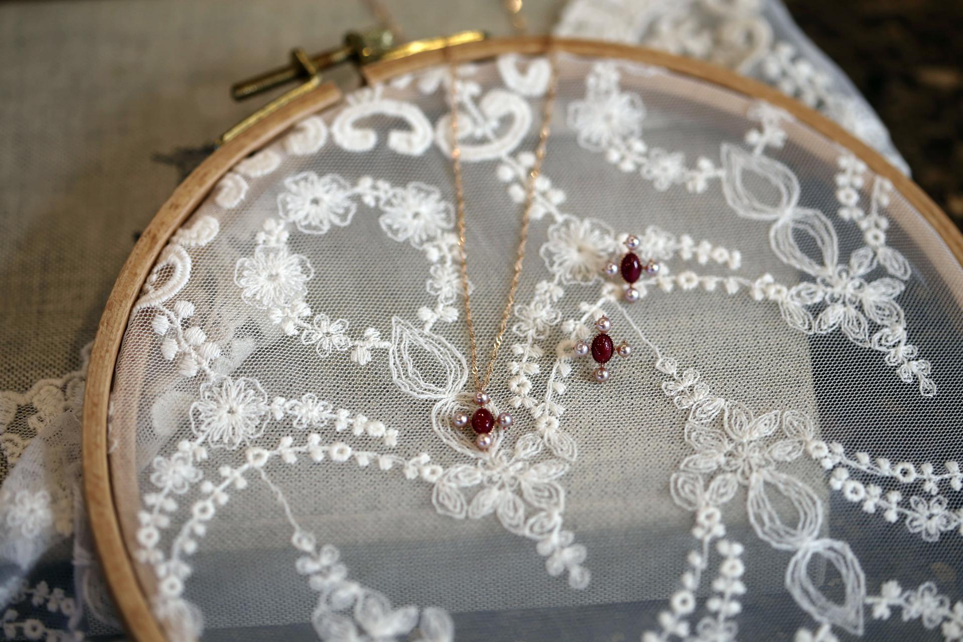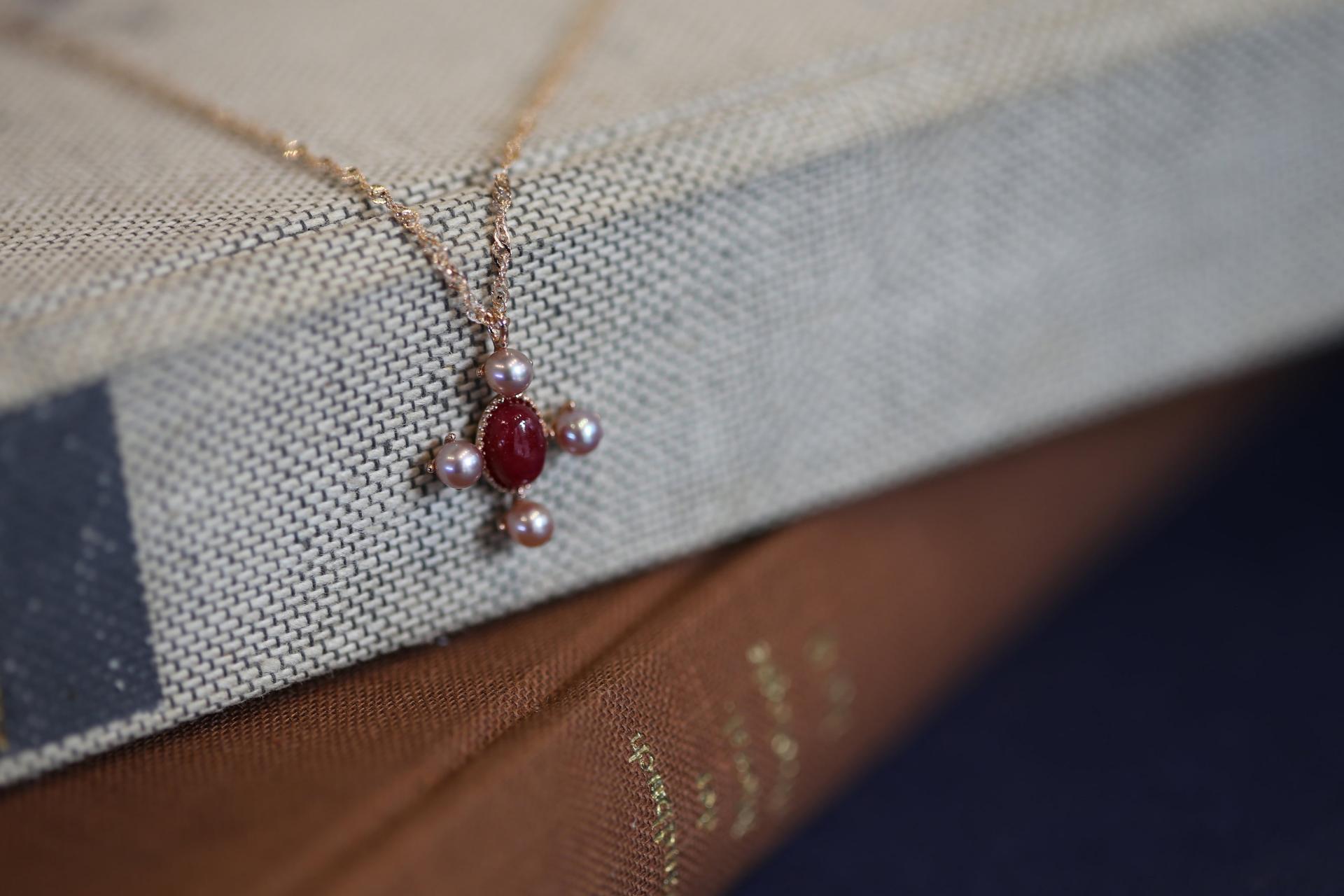 루비 컬러와 은은하게 어우러지는 핑크 담수진주를