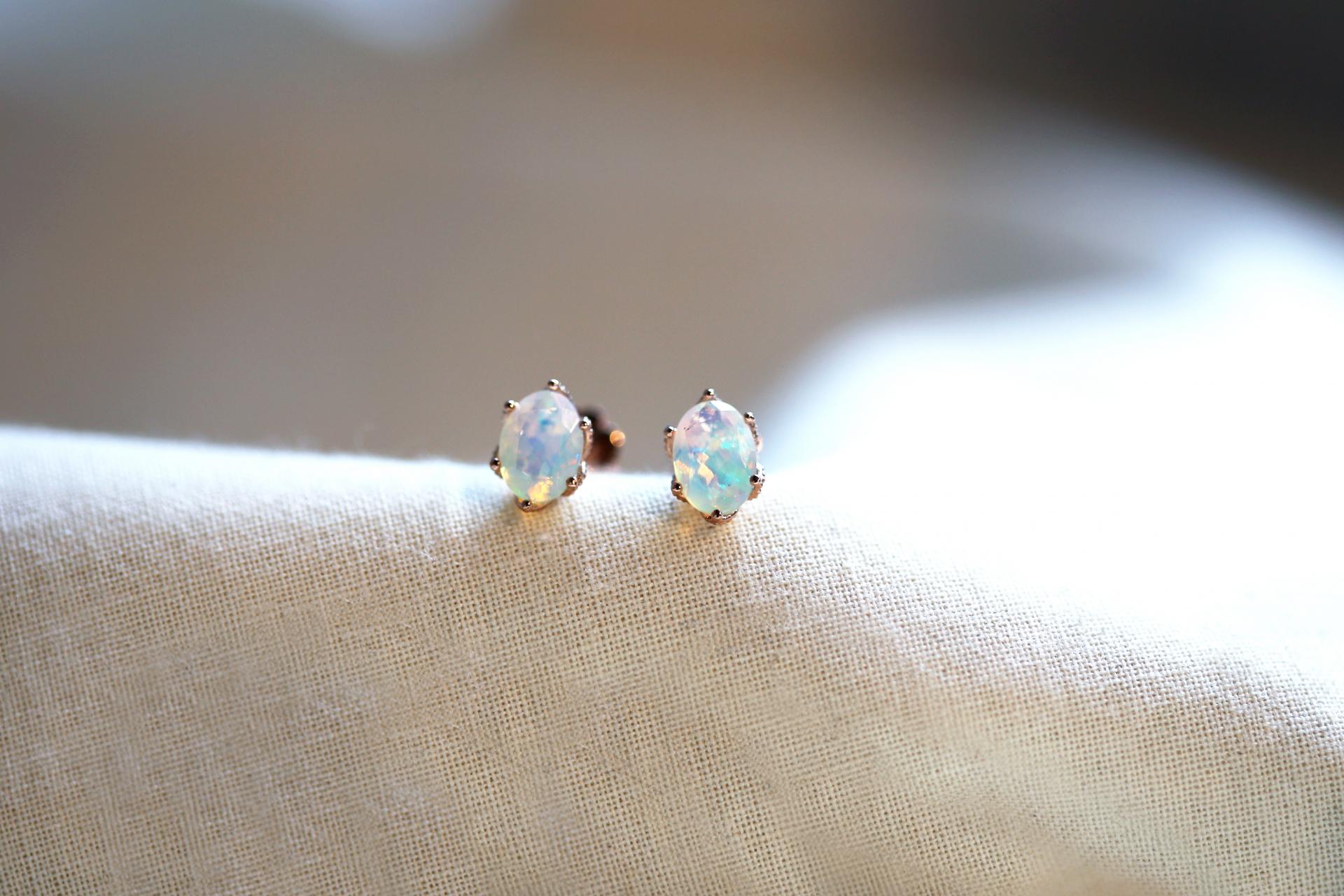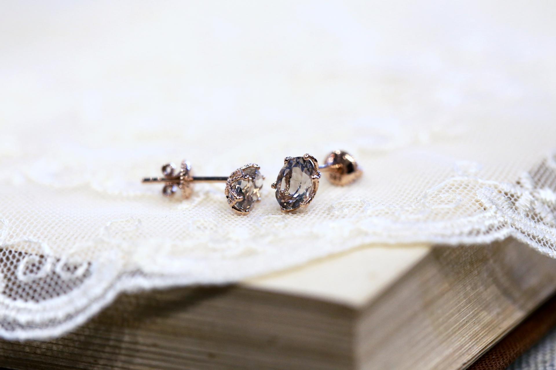 여러 빛깔의 파이어가 신비로운 에티오피아 오팔 , 살구빛 핑크의 로맨틱한 모거나이트 중 선택 가능합니다.