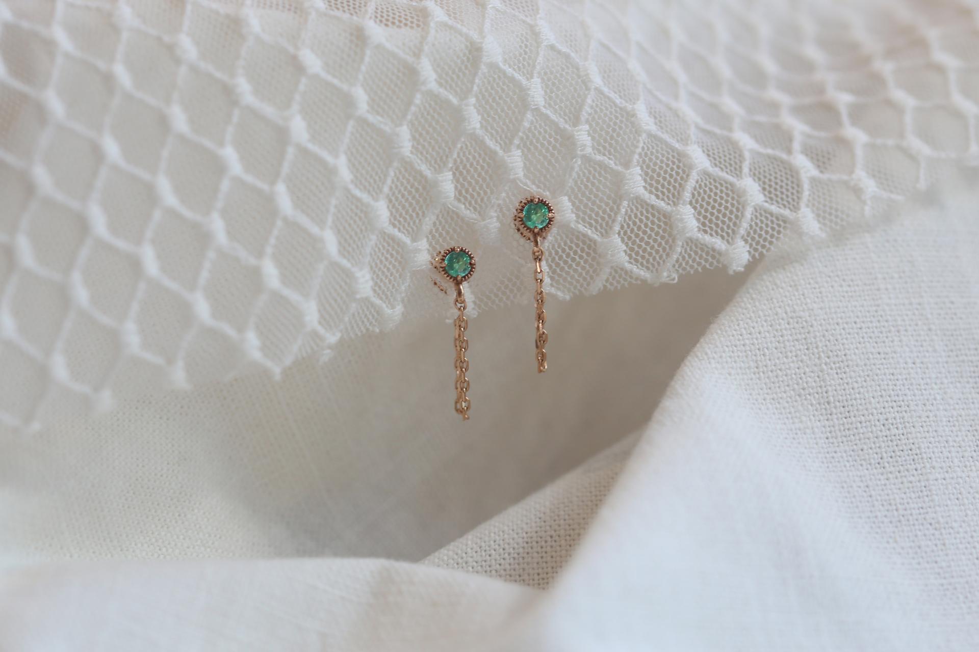 체인이 연결된 귀걸이는 클러치(귀걸이 뒷장식)와 연결되어 있어 잃어버릴 염려 없이 편하게 착용할 수 있습니다.