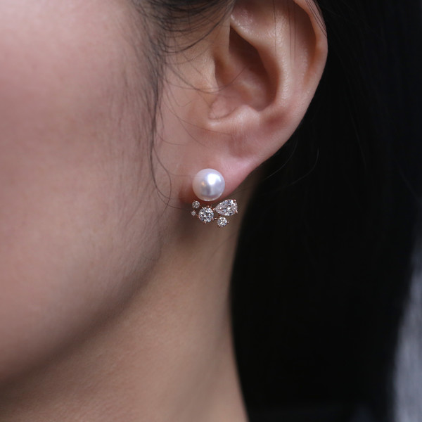 AAA 최상급 아코야 진주와 화이트 다이아몬드가 세팅된