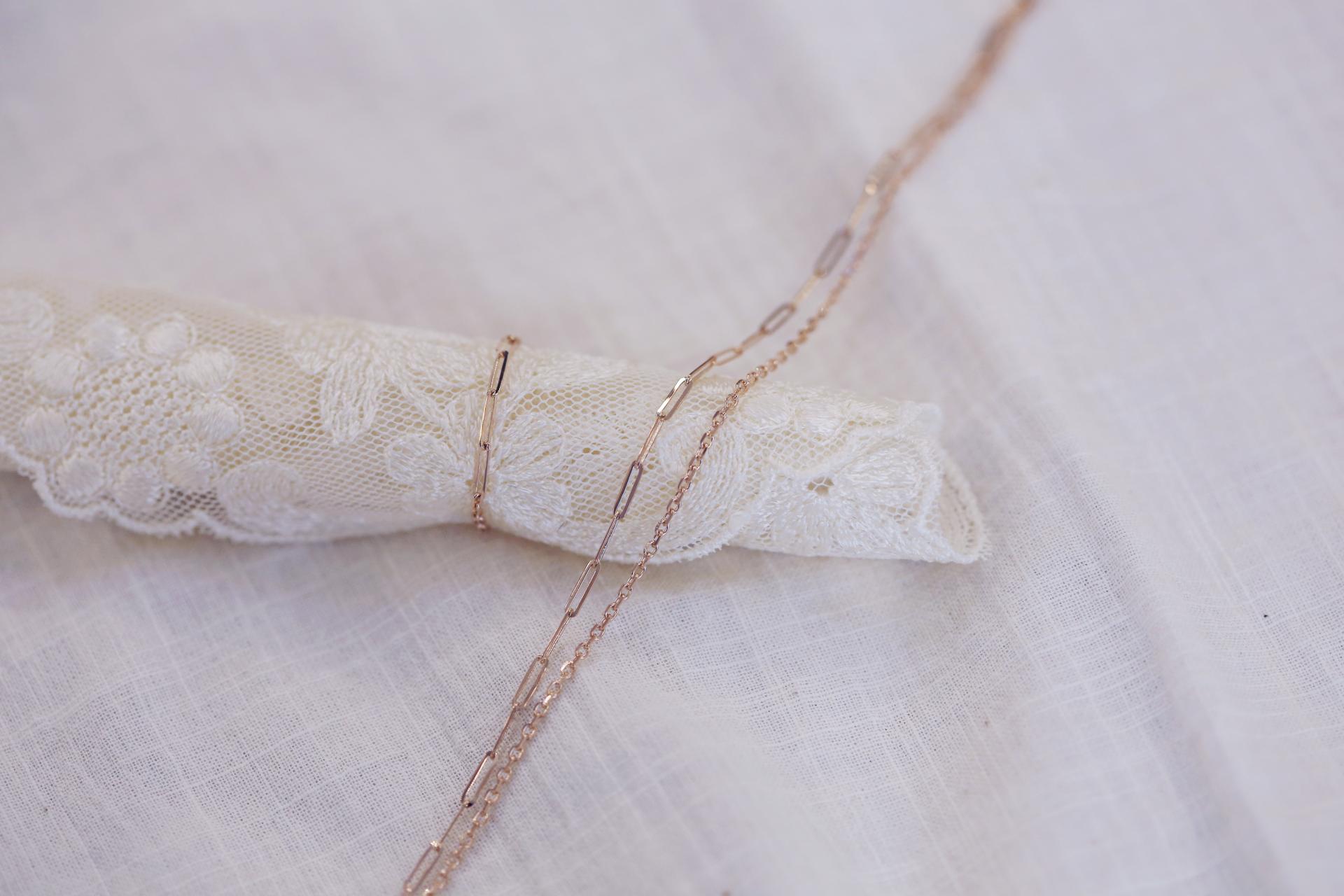 사각형태의 심플한 체인과 반짝이는 가는 체인을 연결한 팔찌로