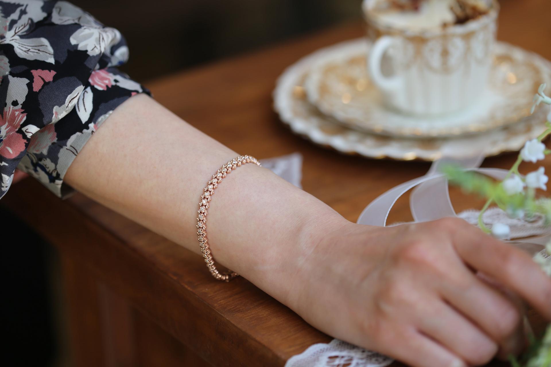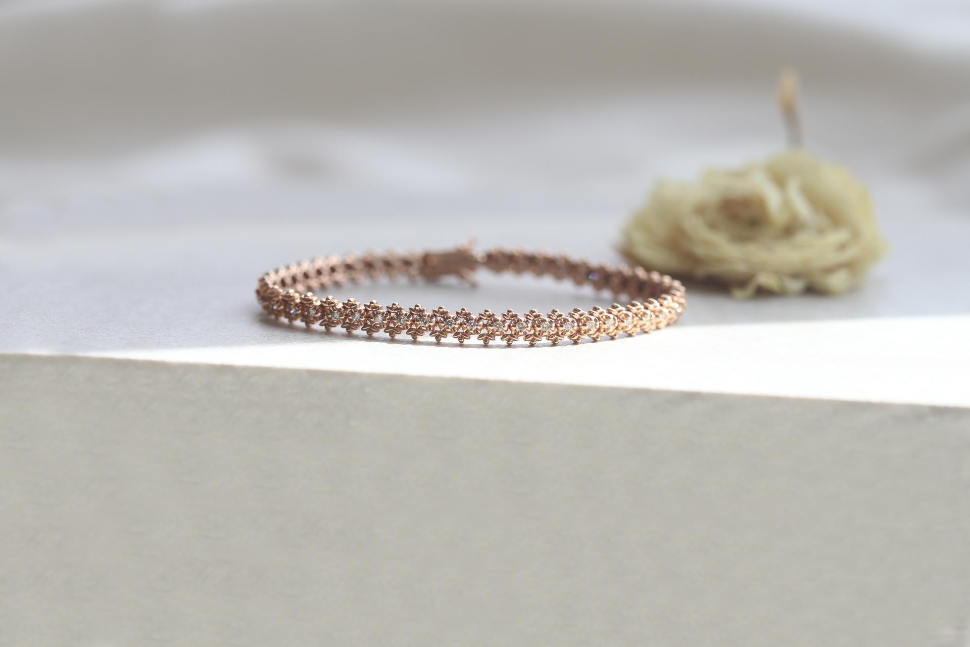 섬세하게 이어진 꽃 사이로 작은 다이아몬드가 은은하게 반짝이는 Fiore 브레이슬릿입니다.