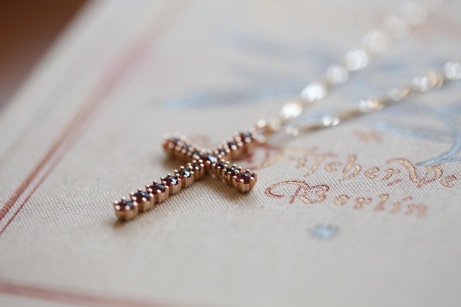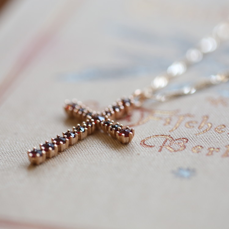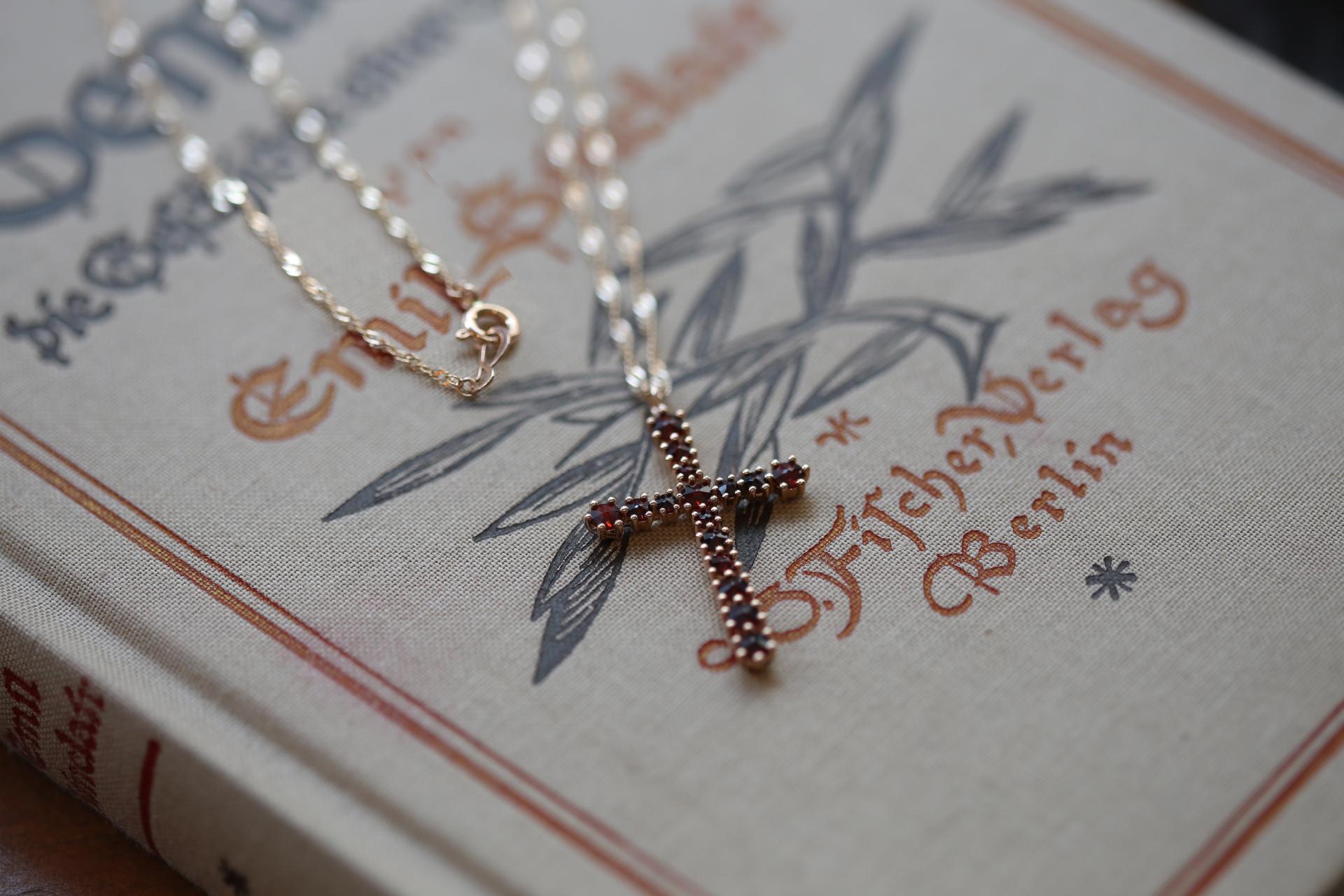 가넷 십자가 은 목걸이를
