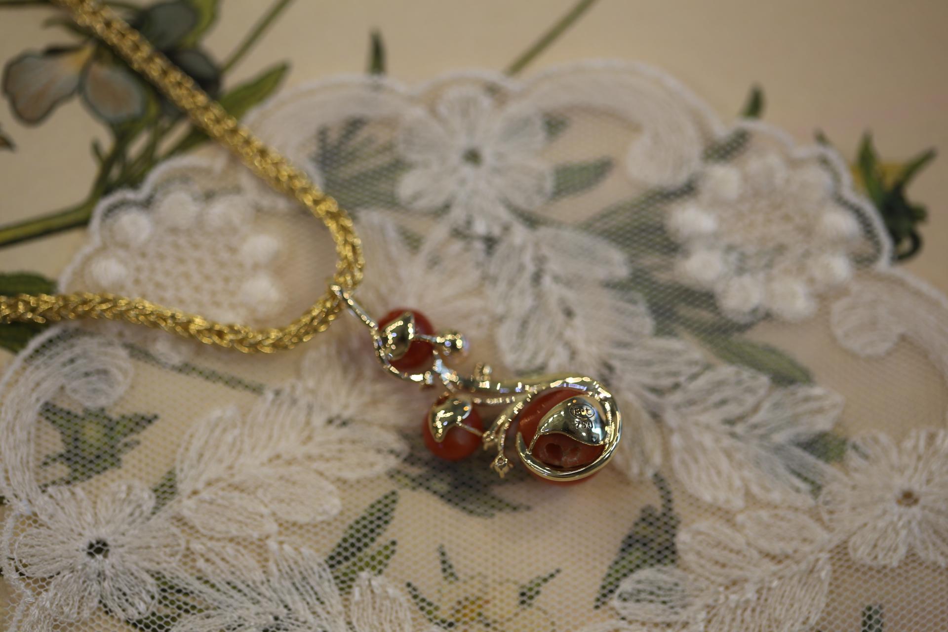 열매와 잎을 모티브로 팬던트 뒷부분을 덩굴잎이 감싸는 듯한 디테일로 디자인해드렸습니다.