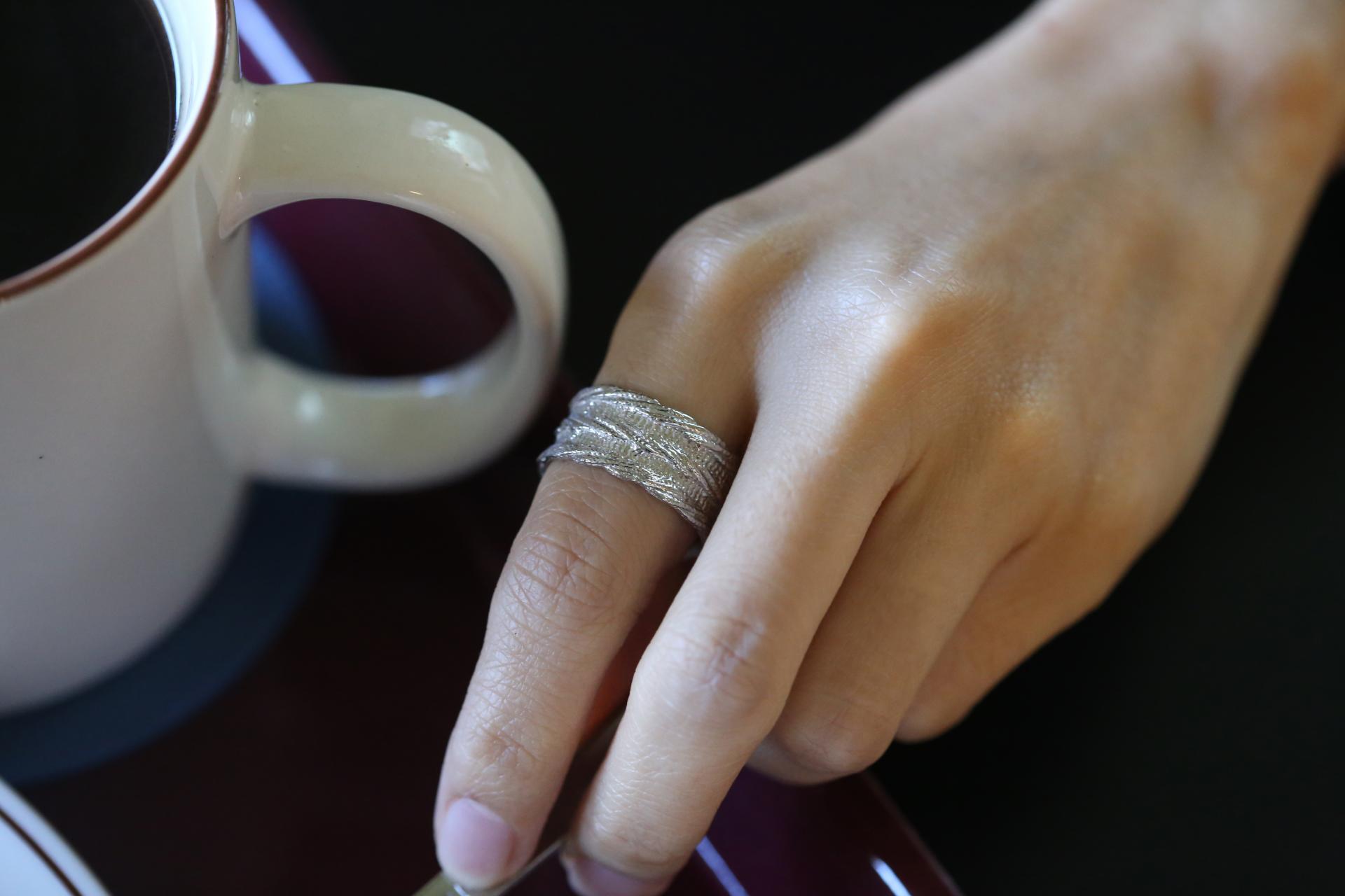 포근한 꽈배기 니트소재를 이용해 제작된 니트리프 웨딩밴드입니다.
