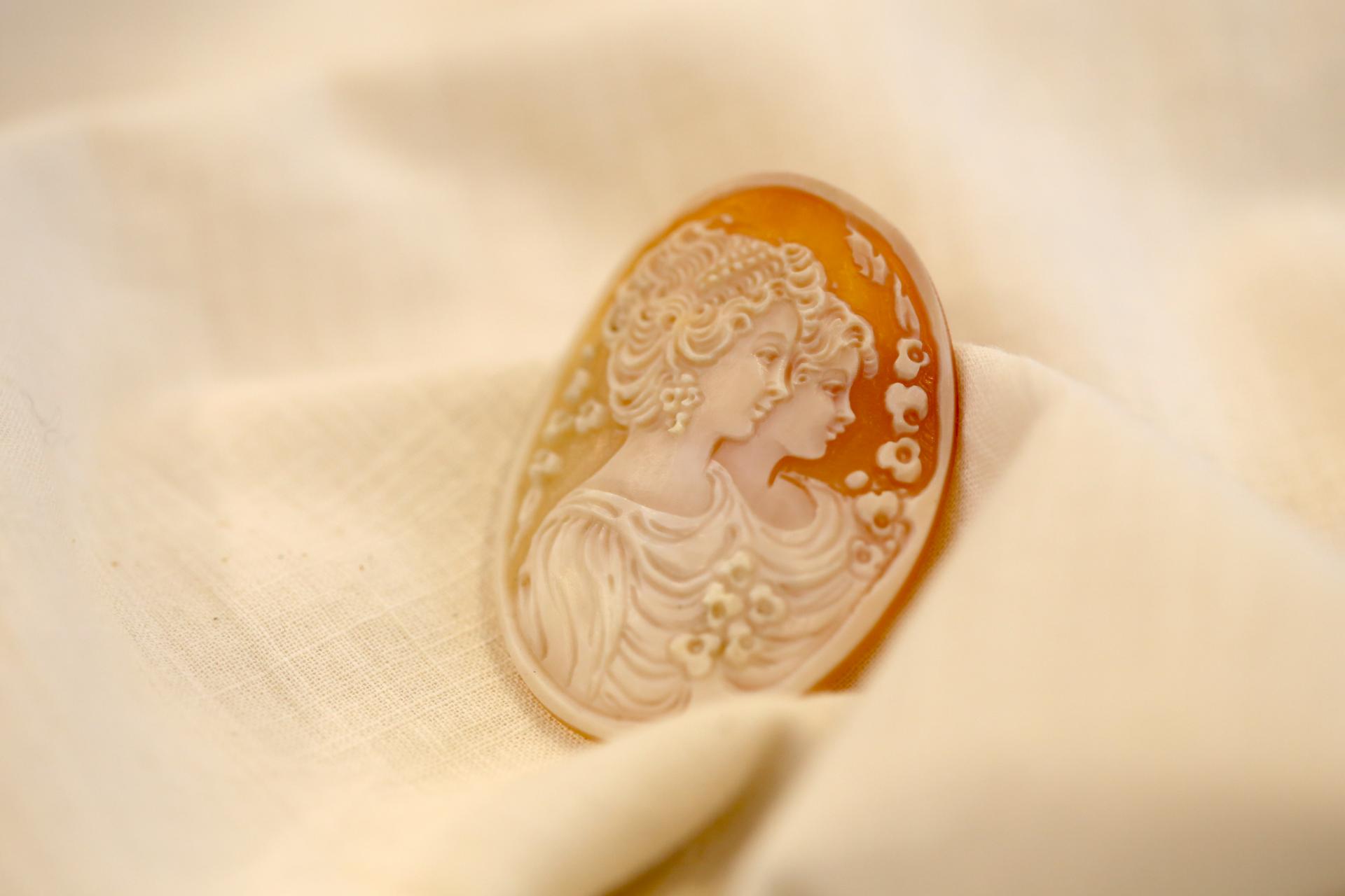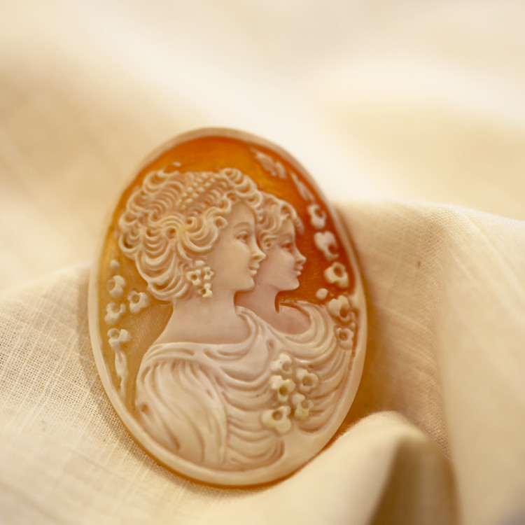 자매인 귀족 여인들이 조각되어 있는 꽤 큼직한 사이즈의 카메오입니다.