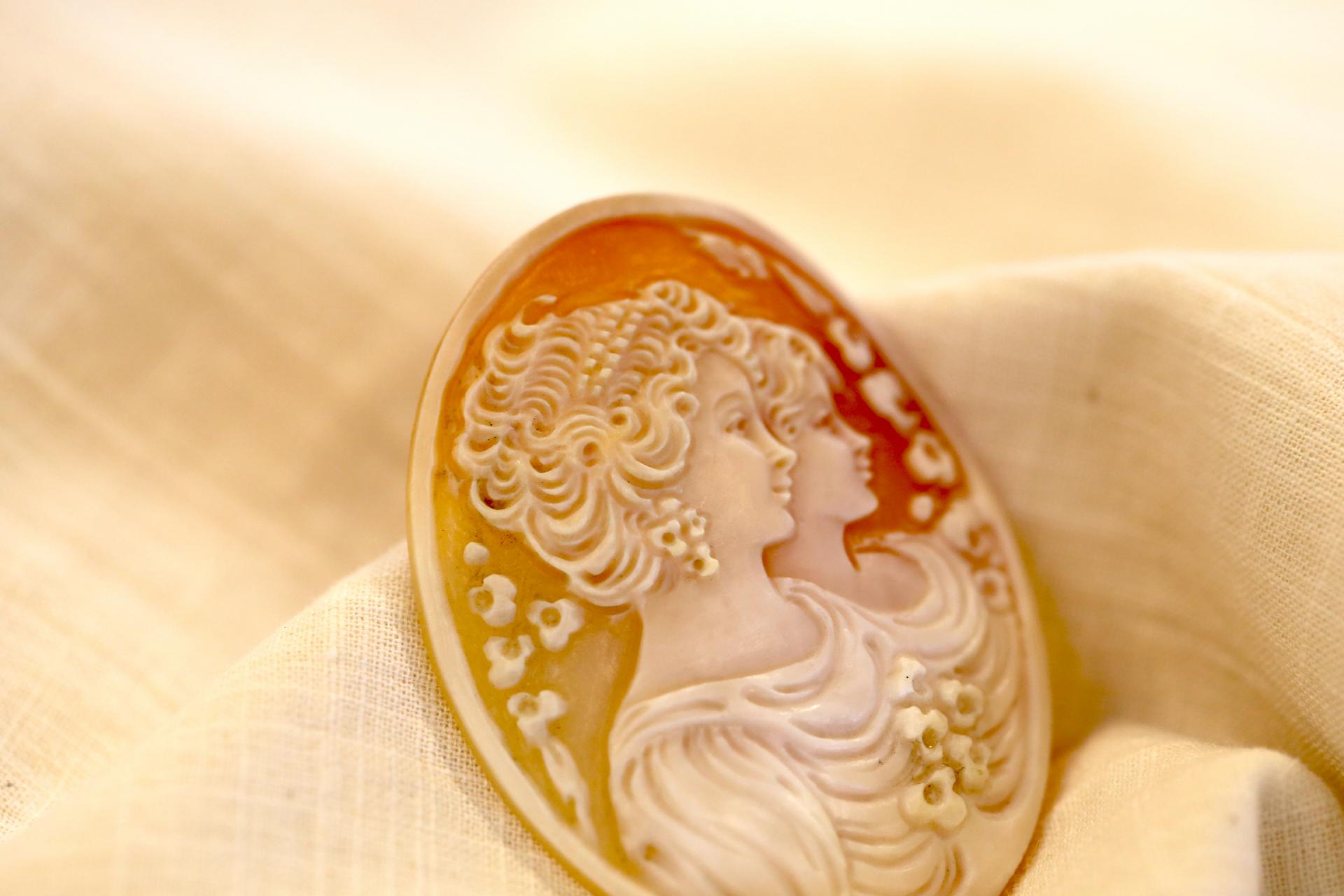 앤티크 카메오 주얼리의 일반적인 모티브는 여신의 얼굴 또는 신화 속 생물의 프로필을 묘사합니다.