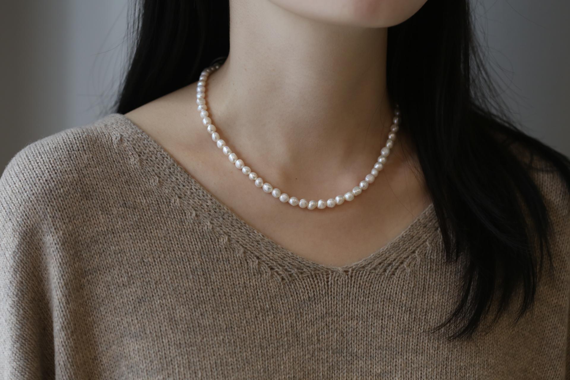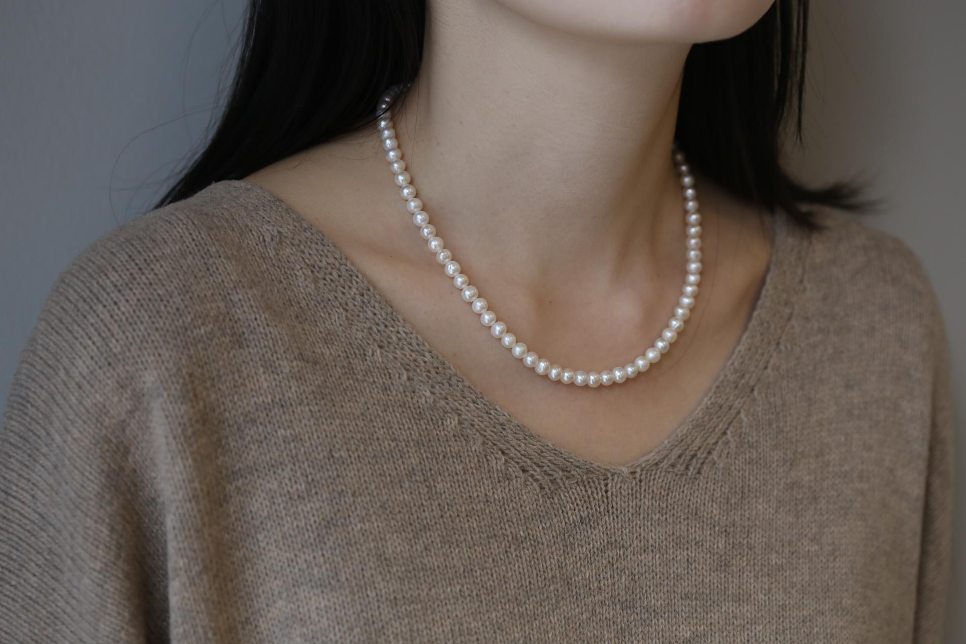6mm 기본 담수 진주 목걸이 // 42cm