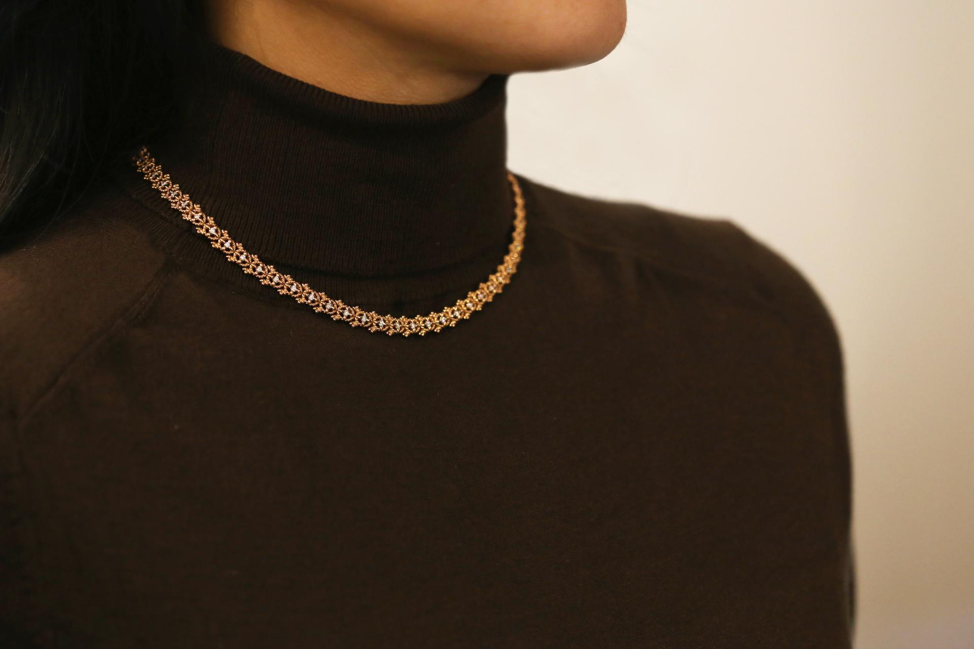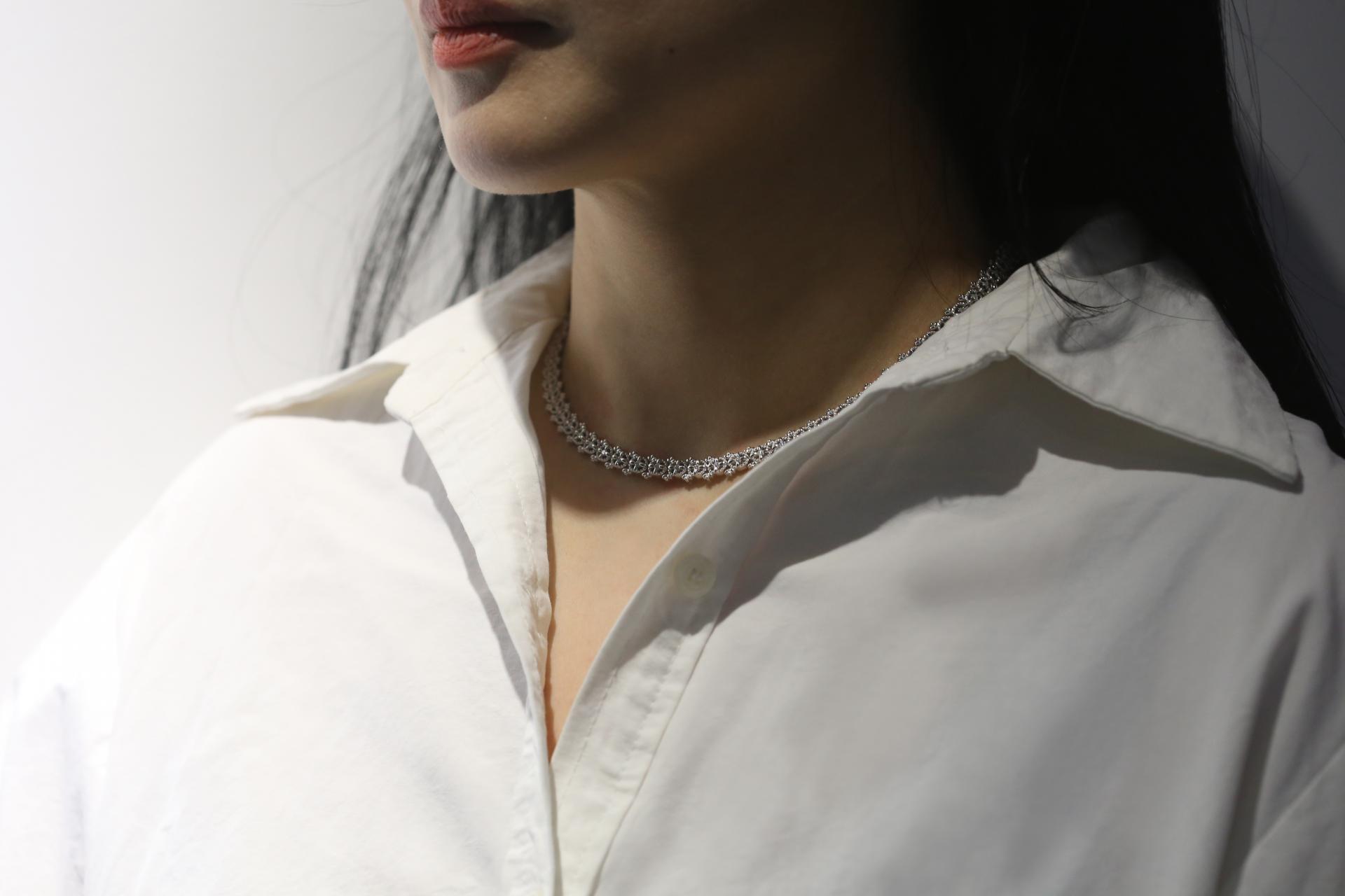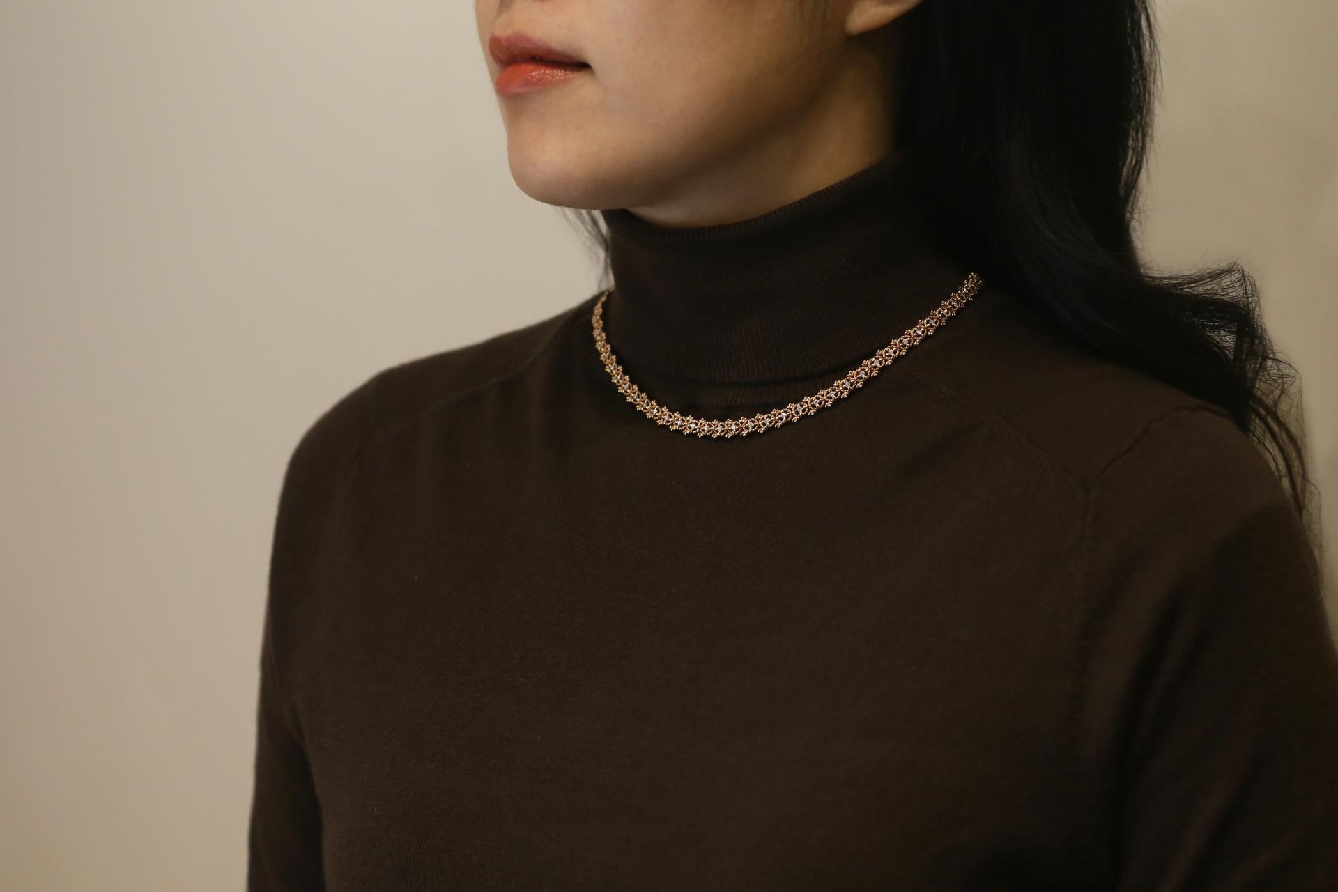 길게 착용하는 것보다 목둘레에 맞춰 착용하면 훨씬 예쁜 디자인입니다.
