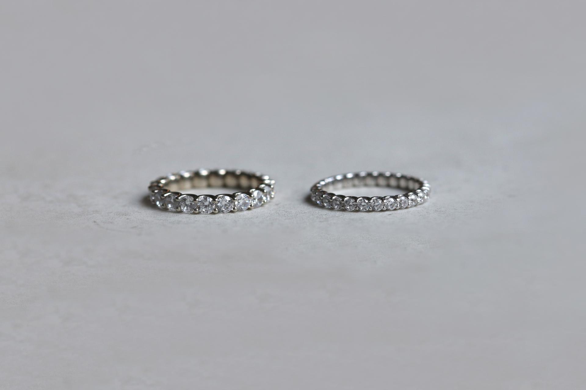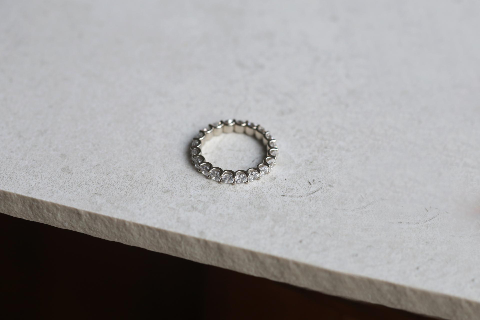 다이아몬드가 360도 둘러 풀세팅된 디자인으로 추후 사이즈 수정이 어려우므로,