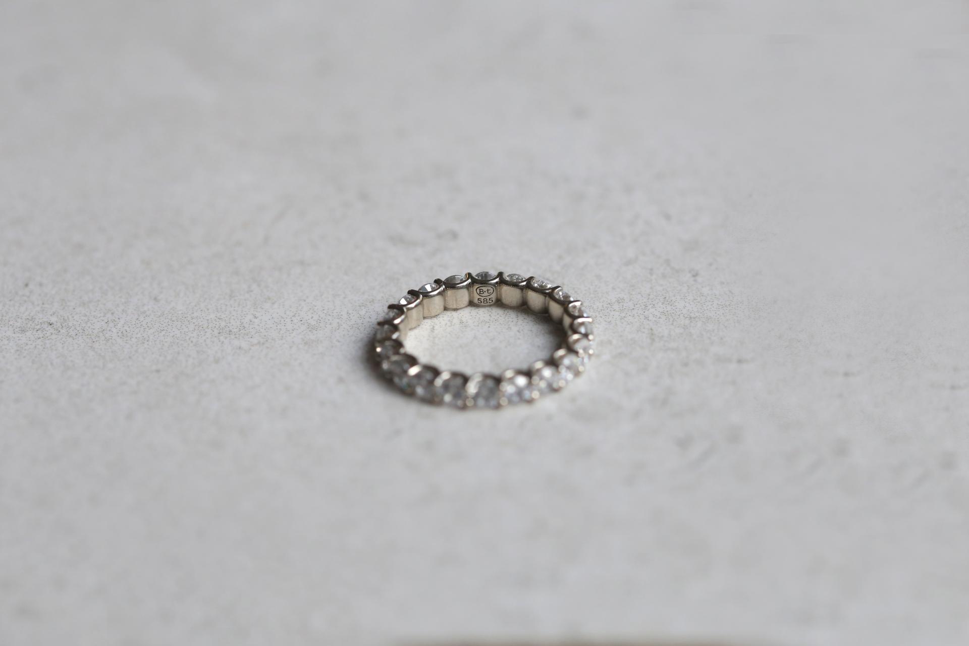 0.1ct 의 네추럴 (천연) 화이트 다이아몬드를 360도 둘러 풀세팅한 반지로.,