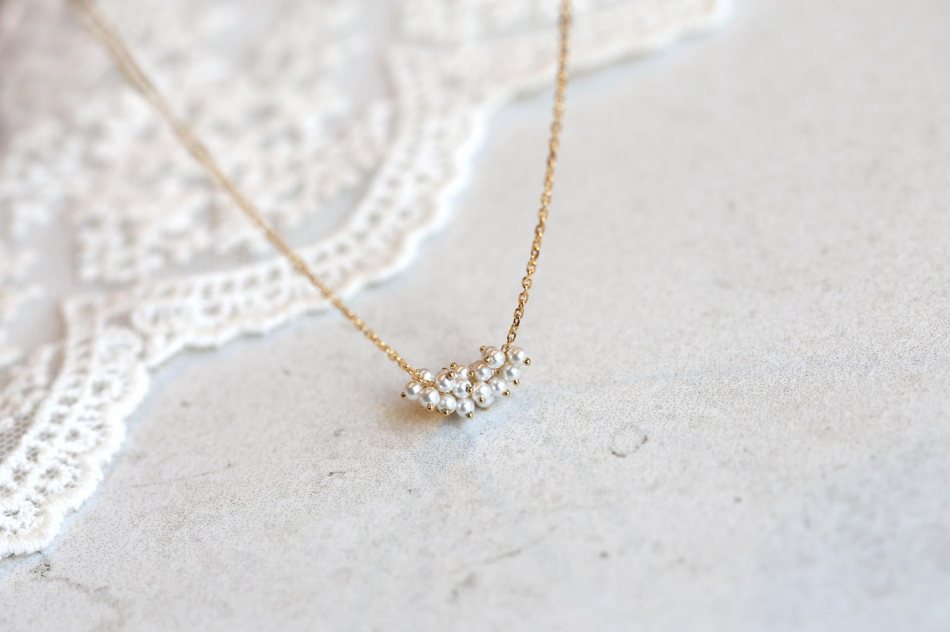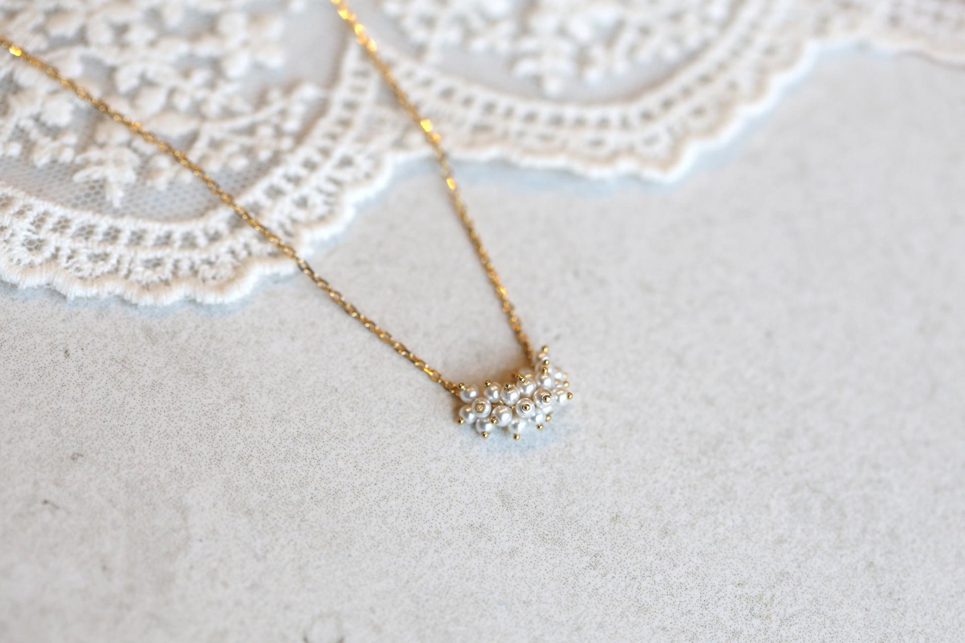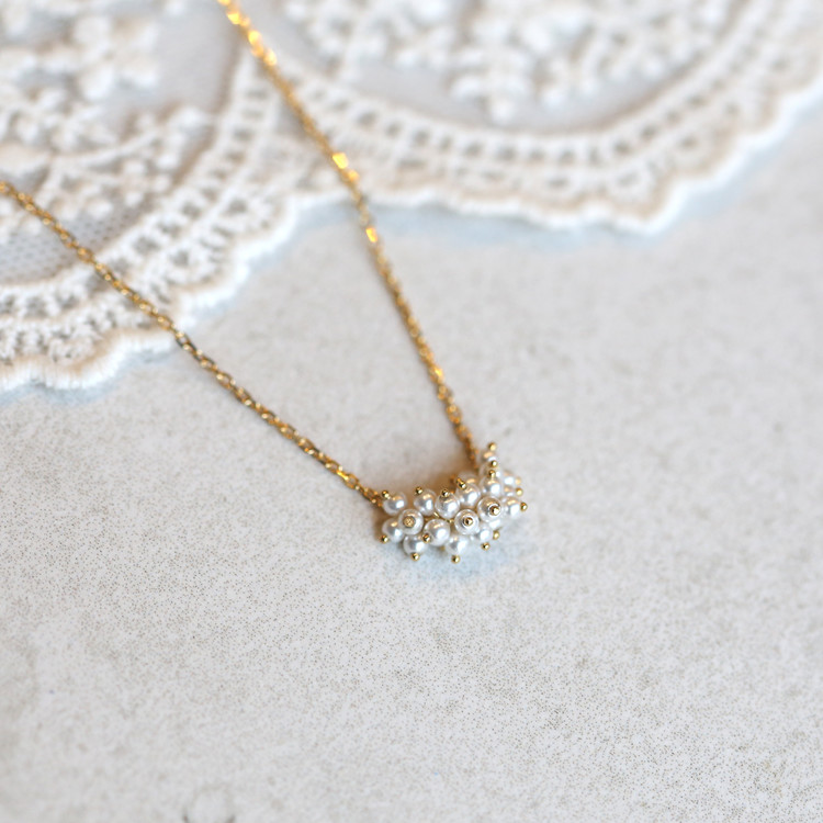 작은 진주가 송이송이 소담스럽게 연결되어 있는 목걸입니다.