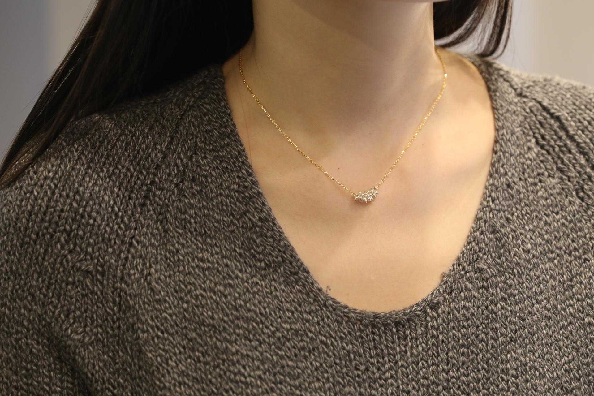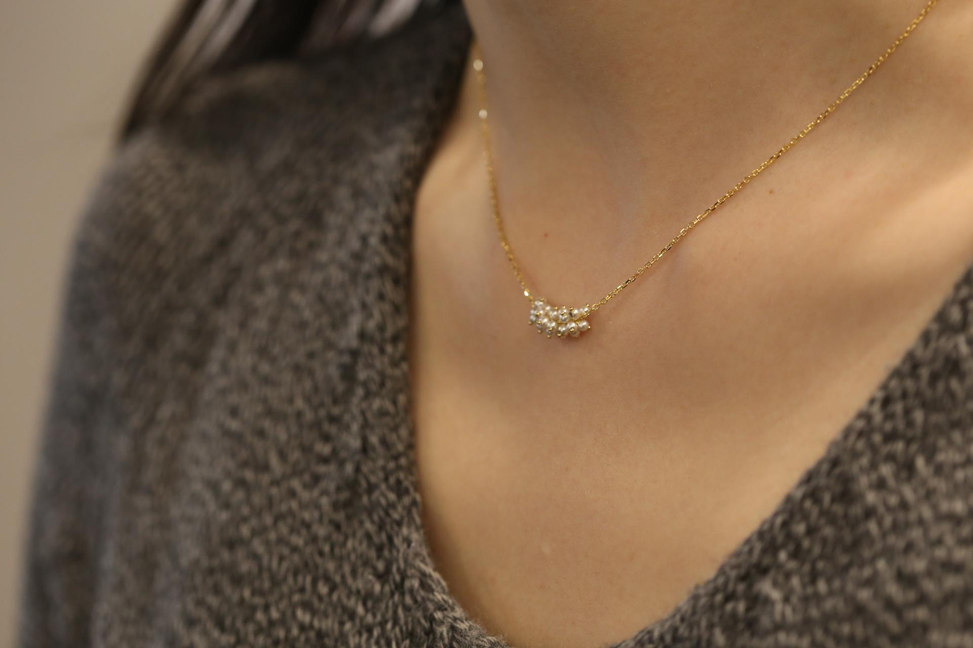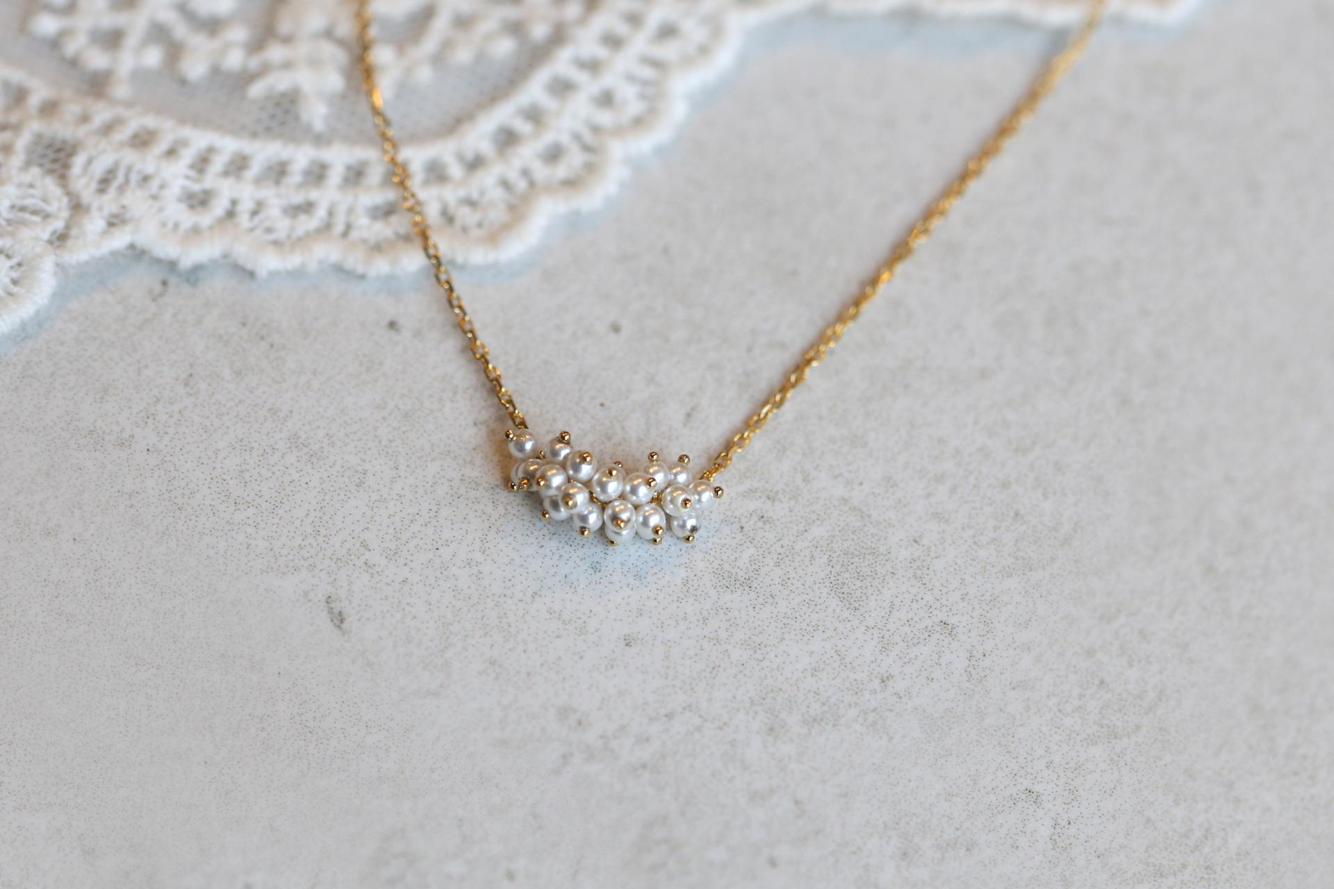 작은 진주가 송이송이 소담스럽게 연결되어 있는 목걸입니다.