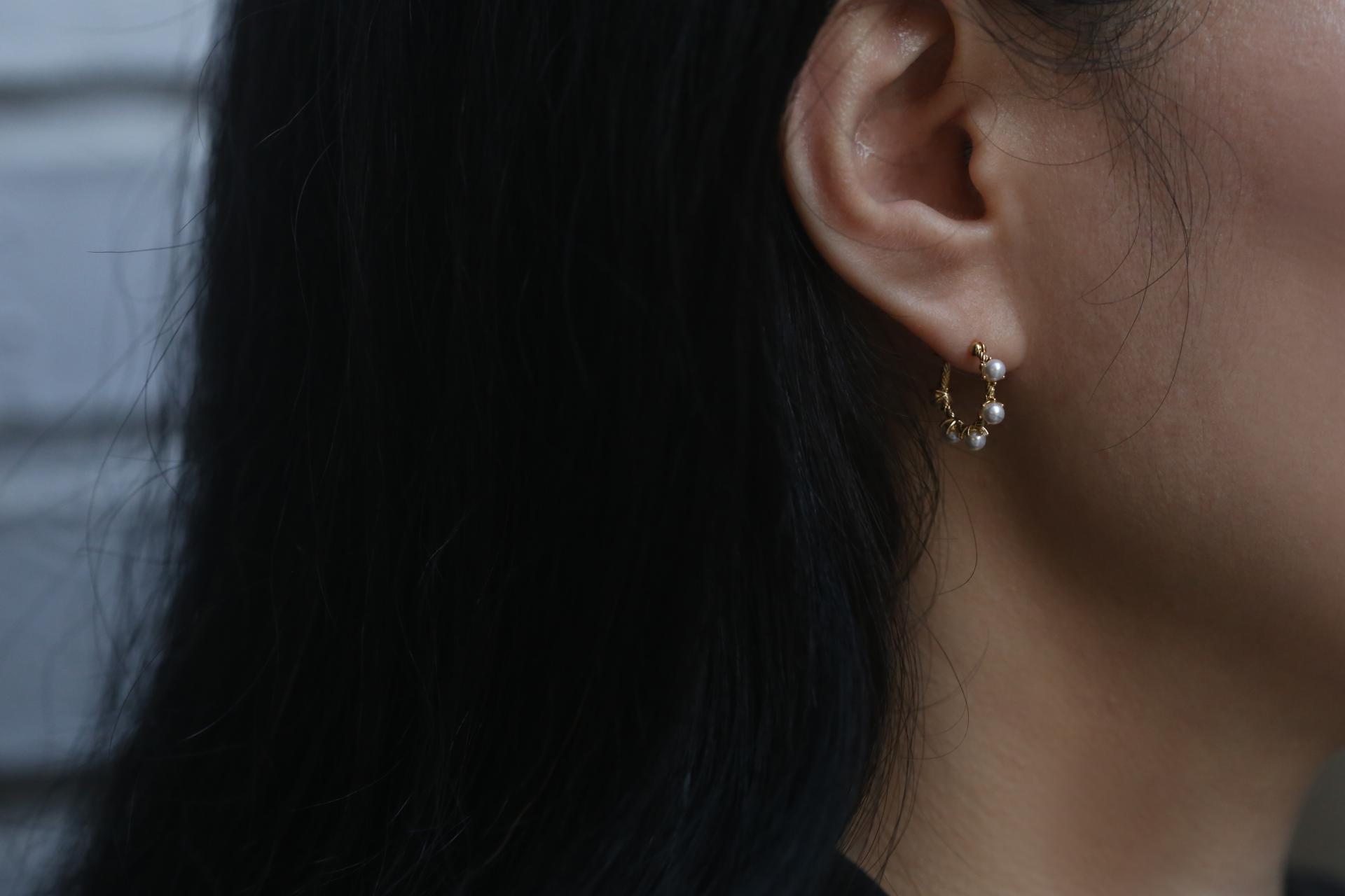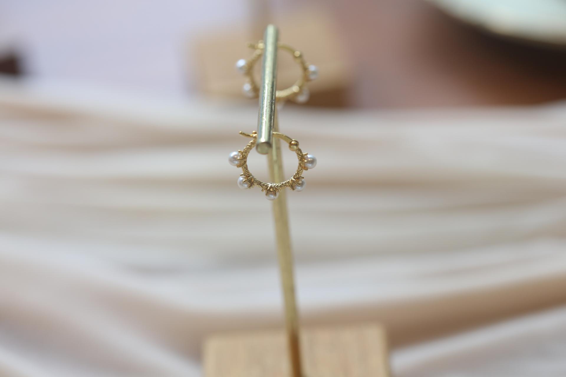 독특한 텍스쳐와 중간 중간 세팅된 진주의 포인트가 엔틱한 분위기를 살려줍니다.