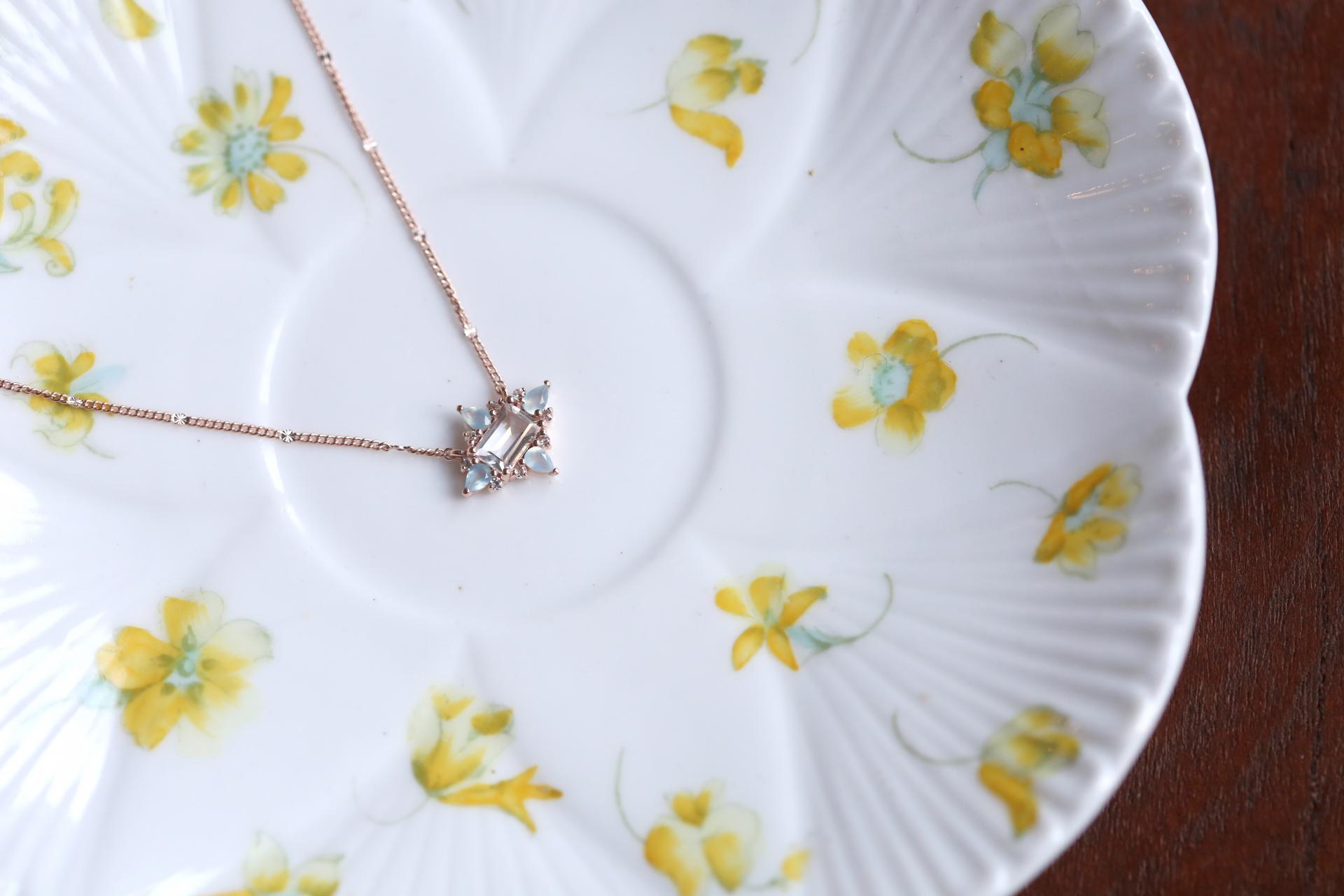 화사하게 어우러지는 컬러감의 유색보석을 세팅한 샤인 바로크 목걸이입니다.