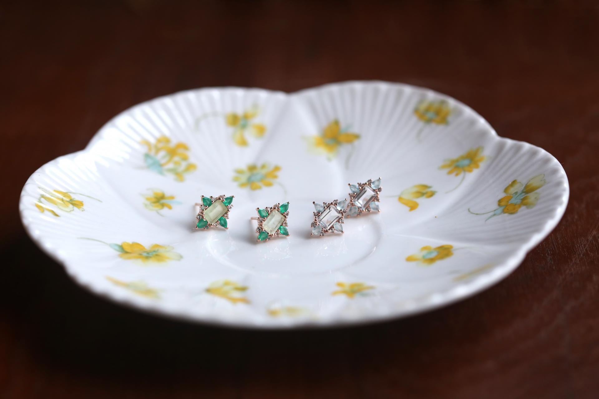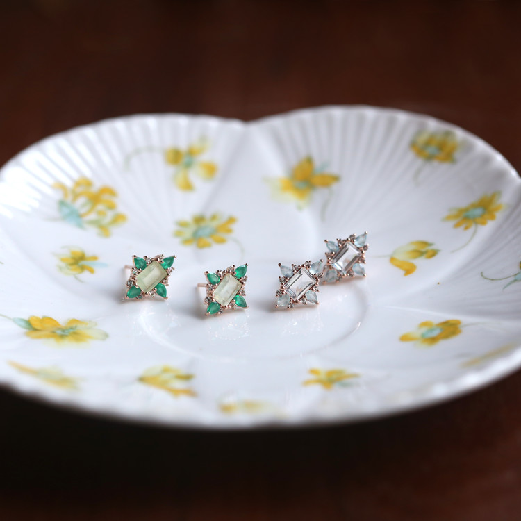 화사하게 어우러지는 젬스톤을 세팅한 이어링입니다.