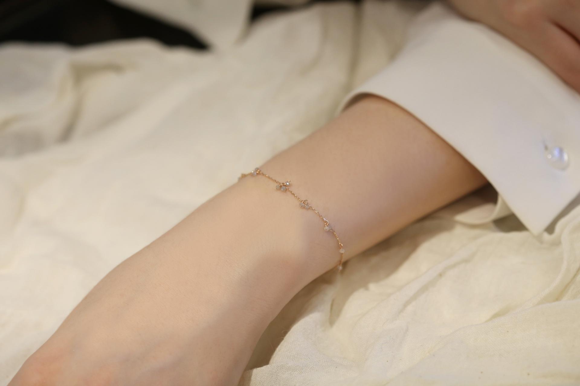 그레이 러프 다이아몬드가 찰랑이게 세팅된 팔찌입니다.