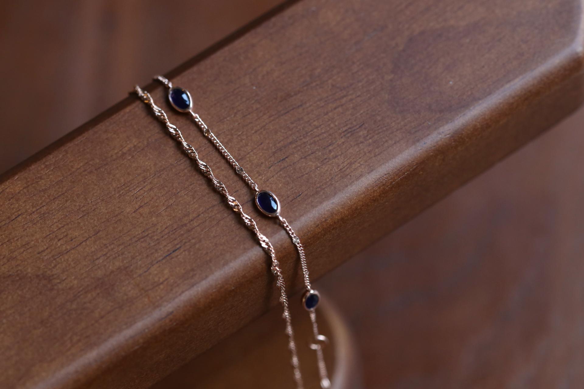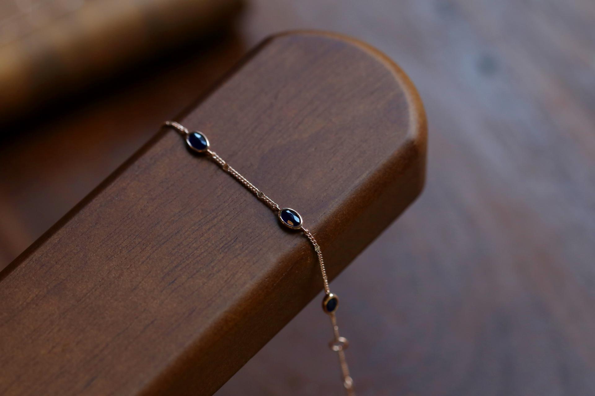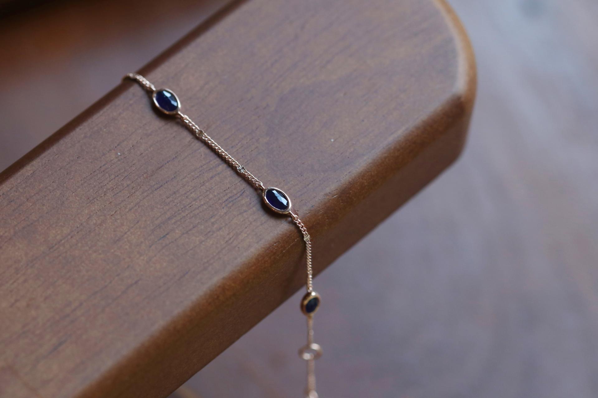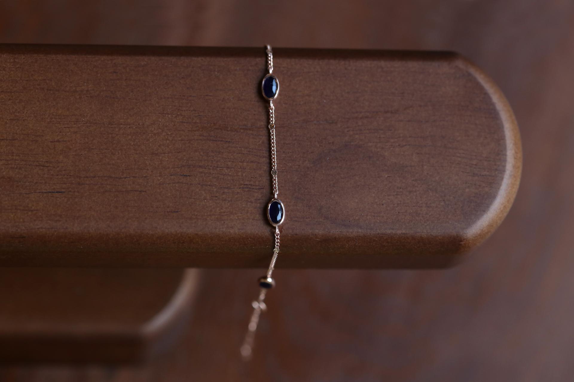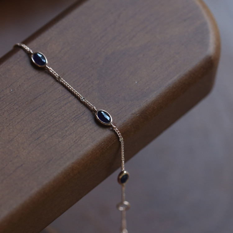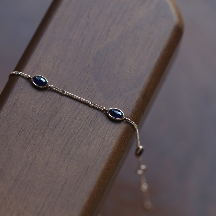 블랙과 네이비 사이의 매력적인 색감의 소달라이트가 세팅되어 있는 팔찌입니다.