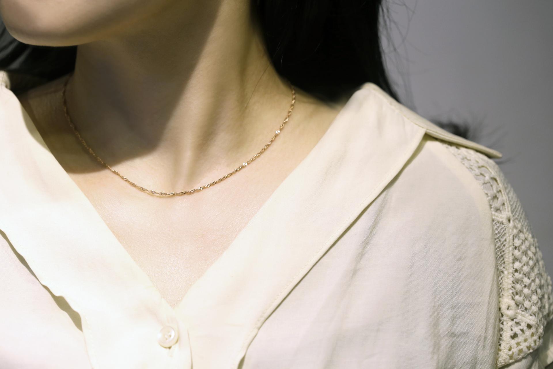 트위스트 체인이 움직일 때마다 은은하게 반짝입니다.