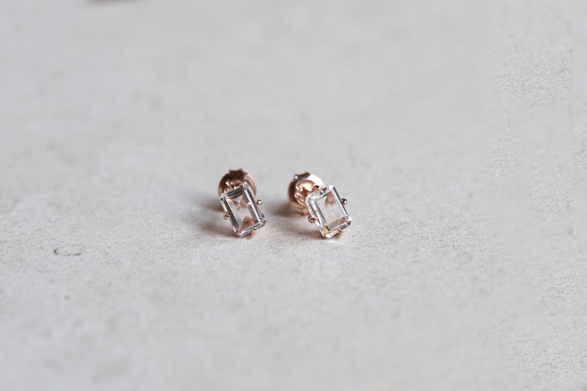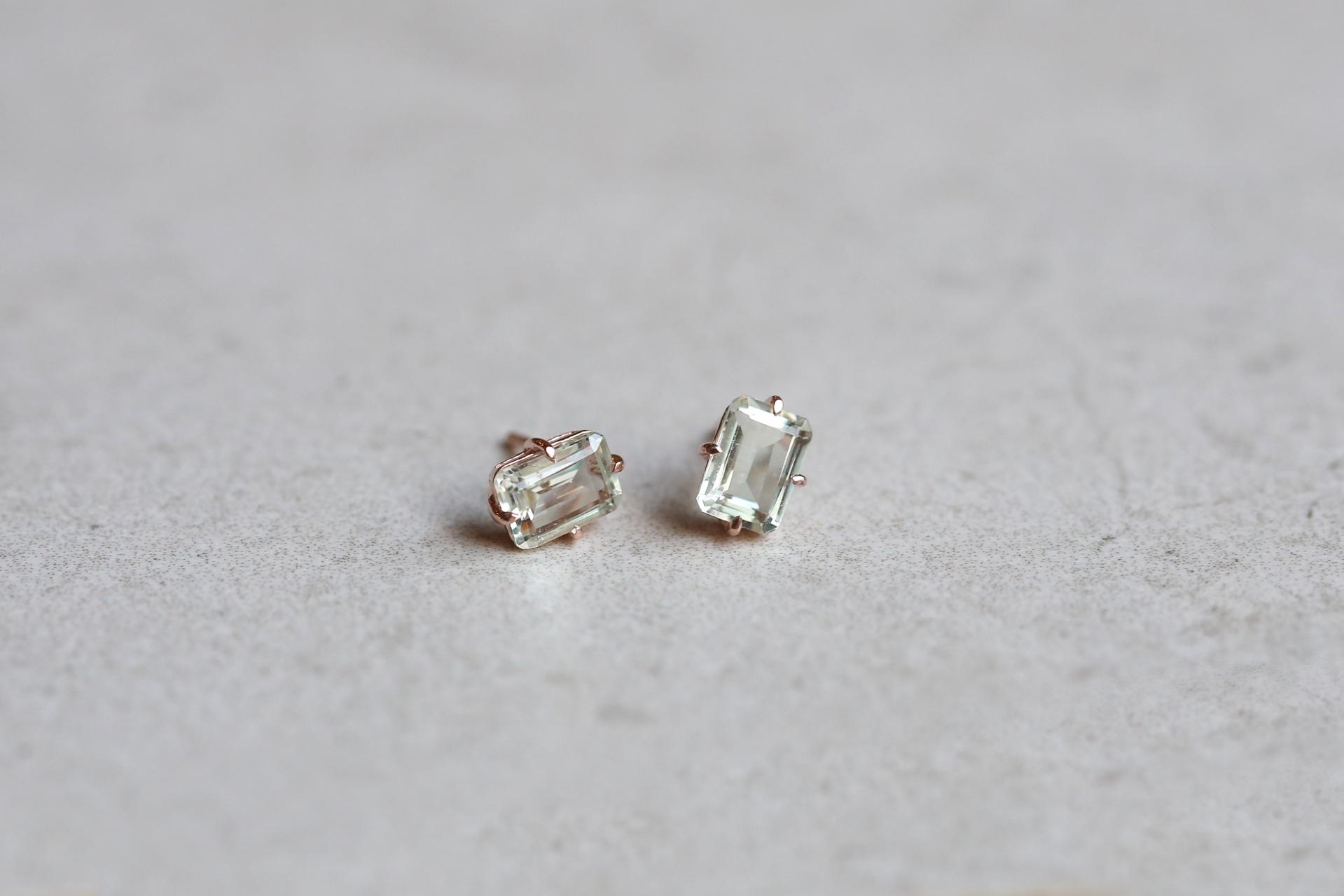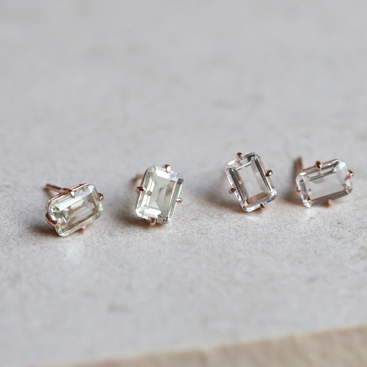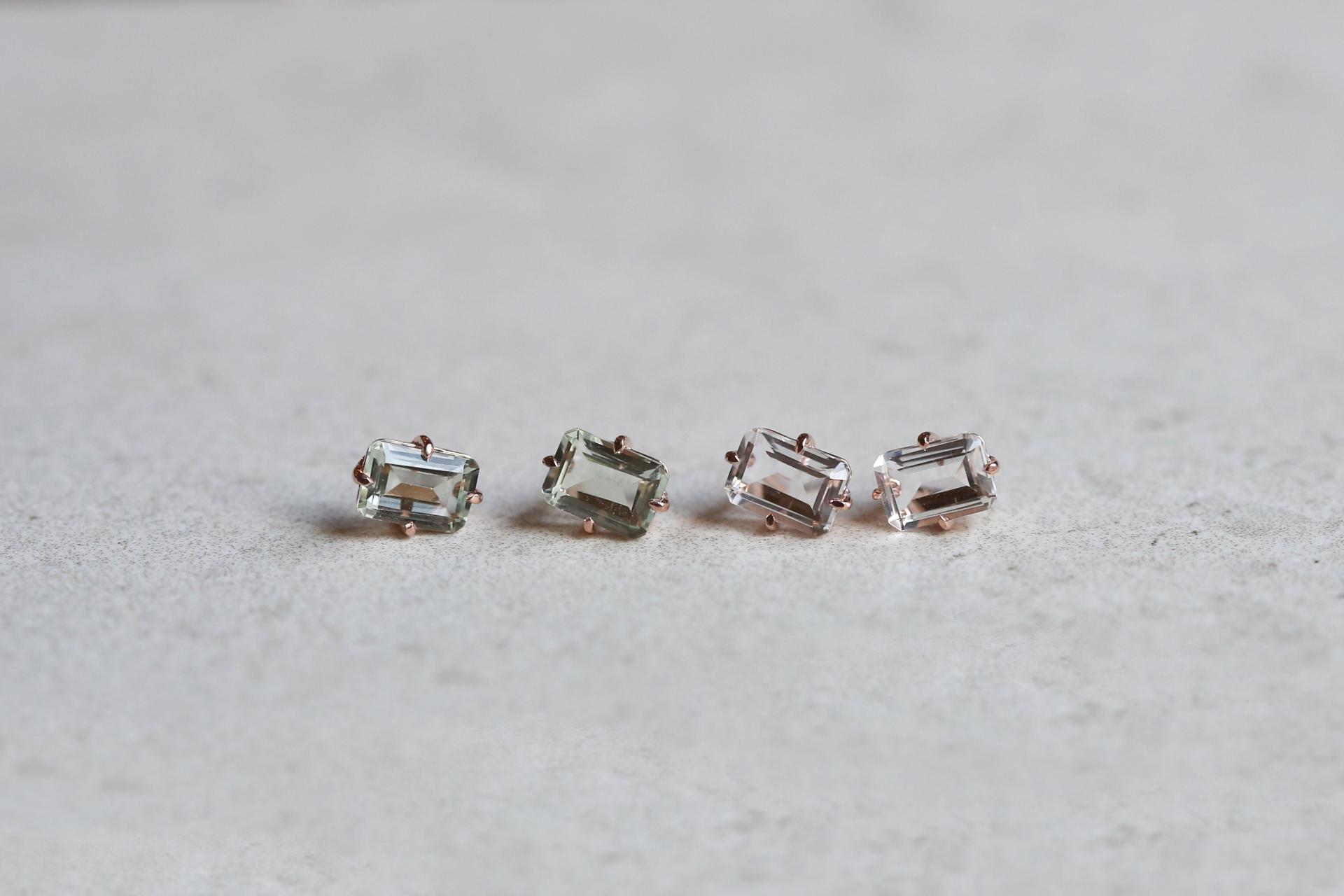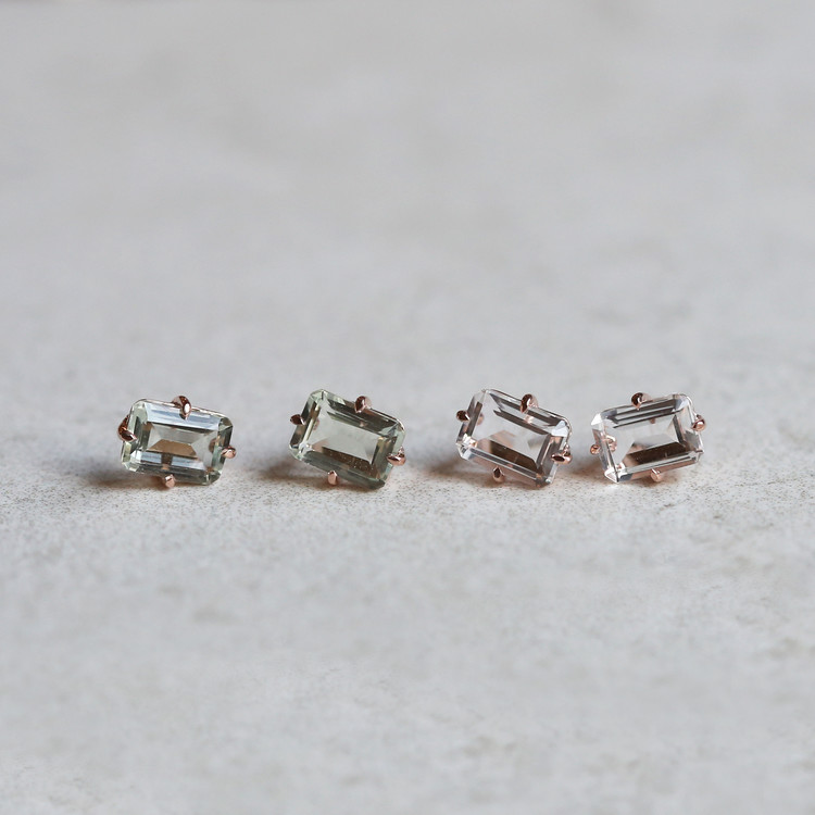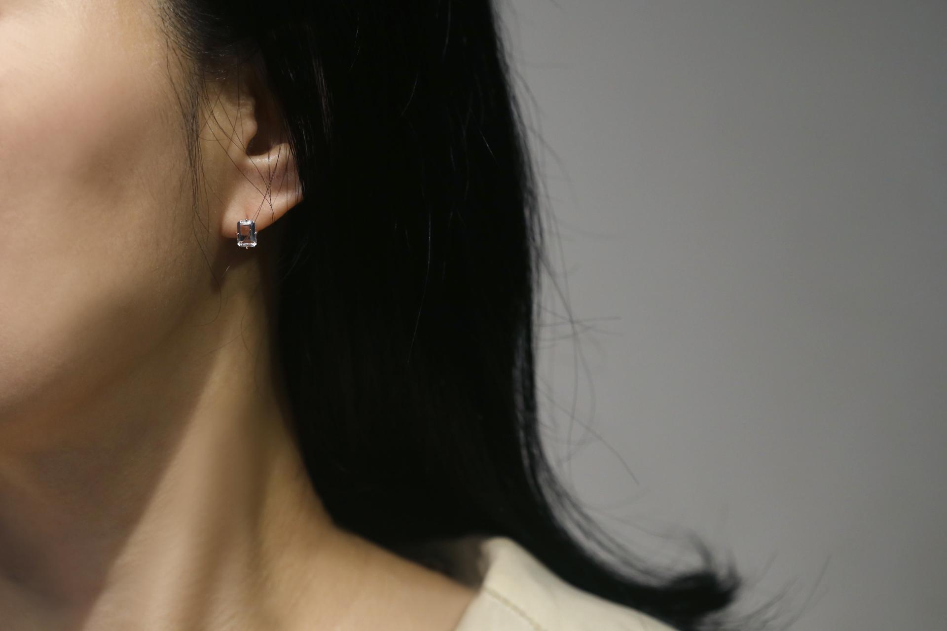 화이트 쿼츠와 그린 쿼츠의 투명한 조합이, 얼음 조각을 귀에 살짝 올려둔 듯한 청량한 인상을 완성합니다.